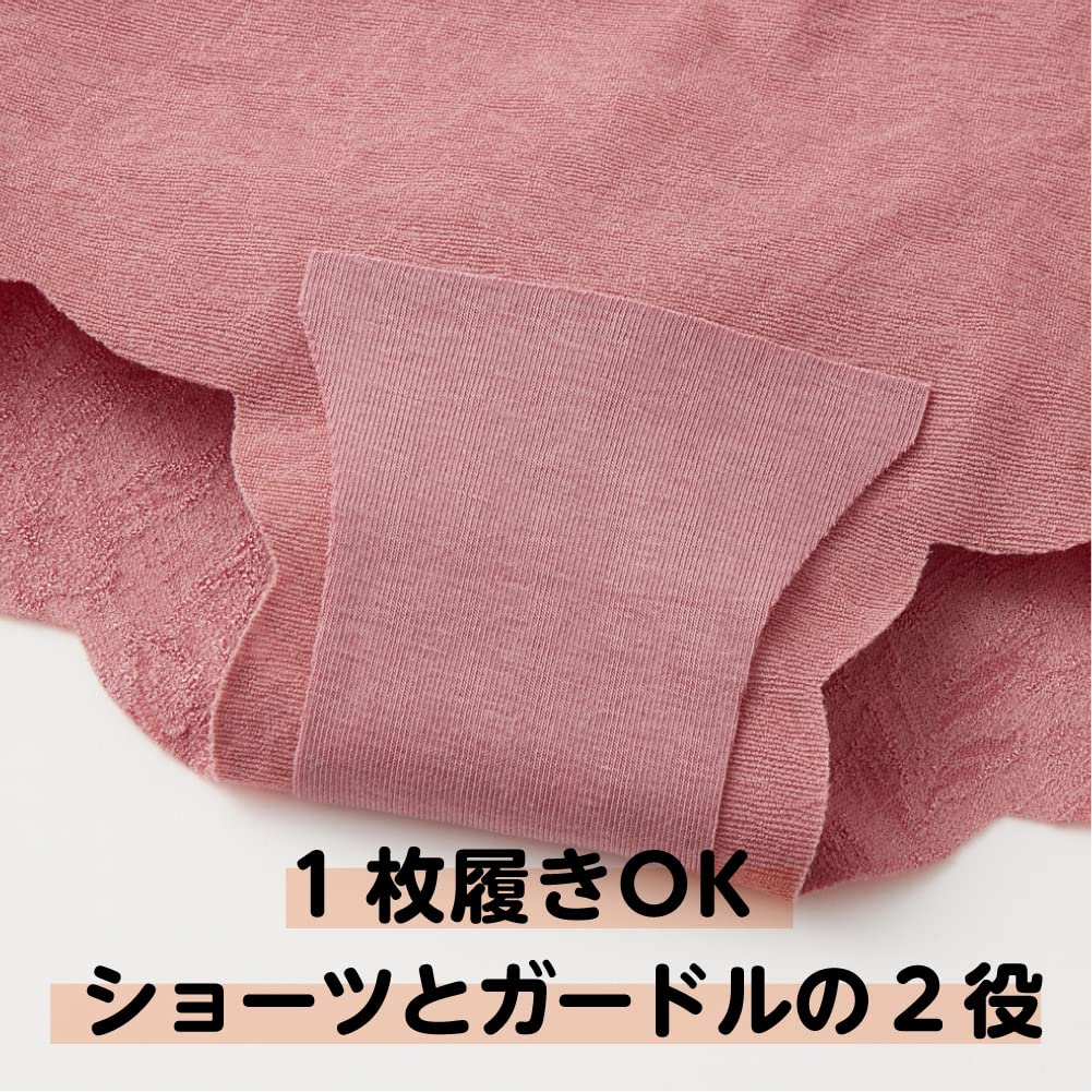 日本製。ショートガードルタイプ。やわらかい素材感に、マチがついているので1枚履きで着用いただけます。
