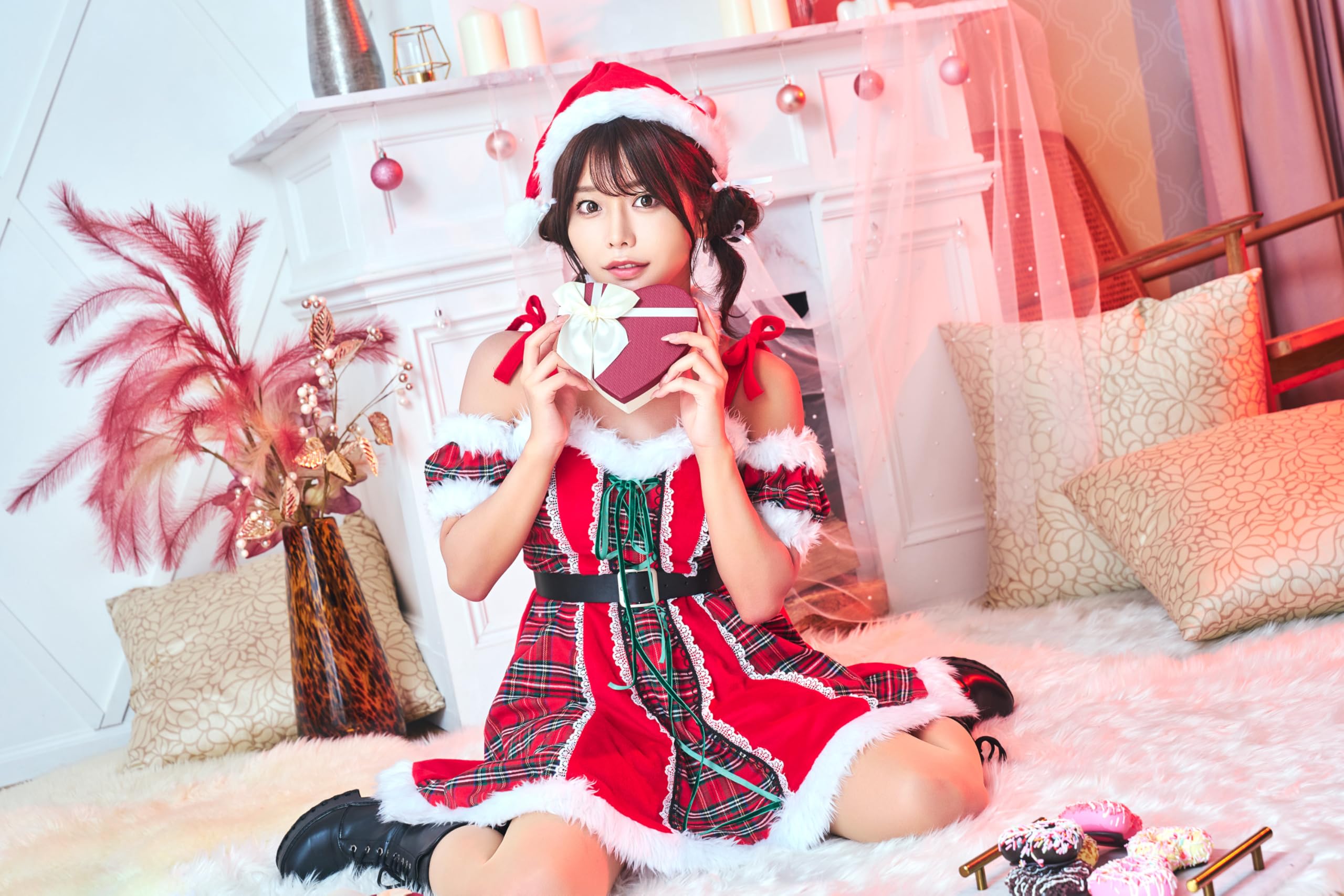 チェック生地の切り替えが可愛いサンタコスチューム。