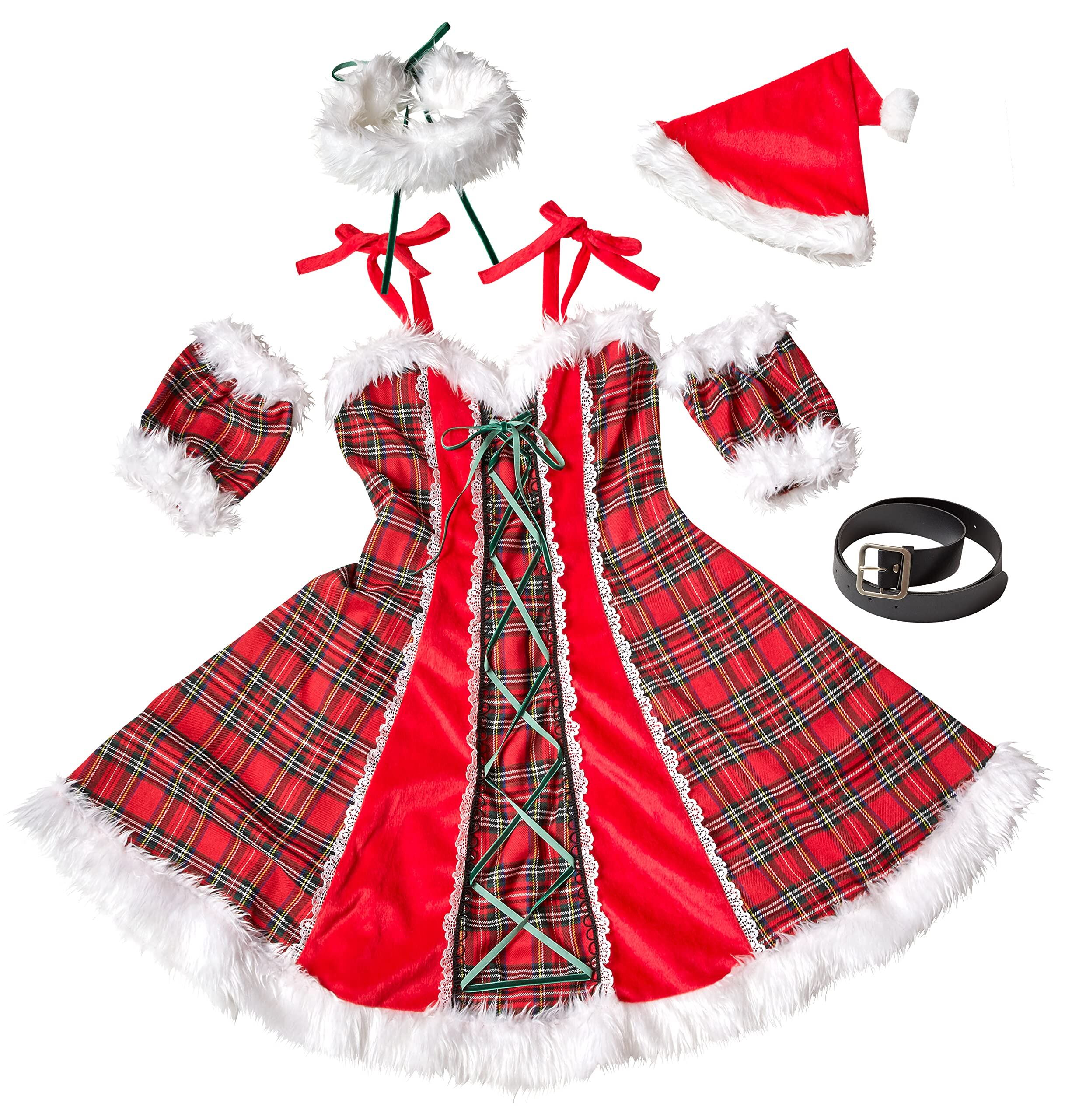 クリアストーン(Clearstone) コスプレ クリスマス チェックフリルレースアップサンタ レディース レッド