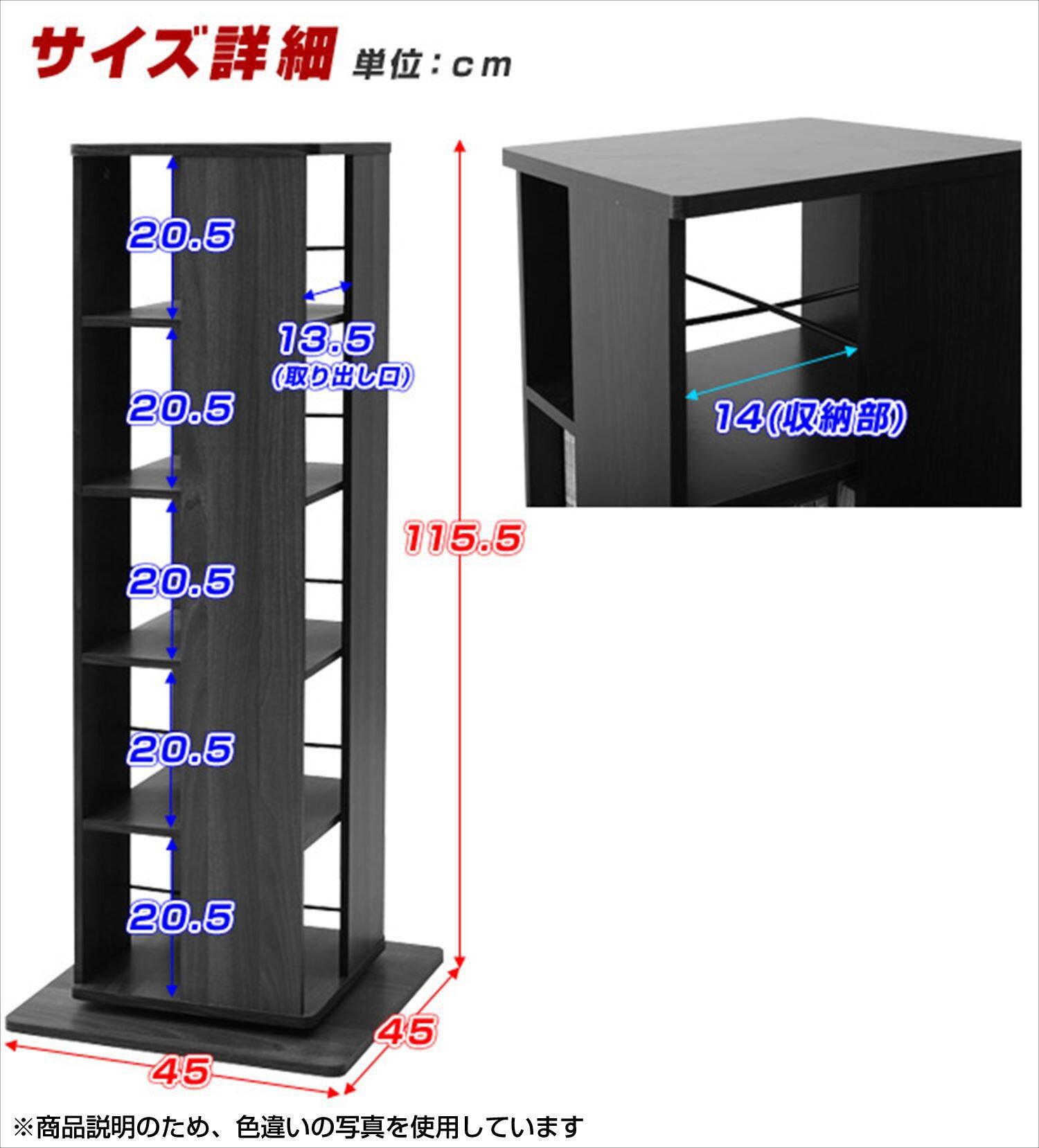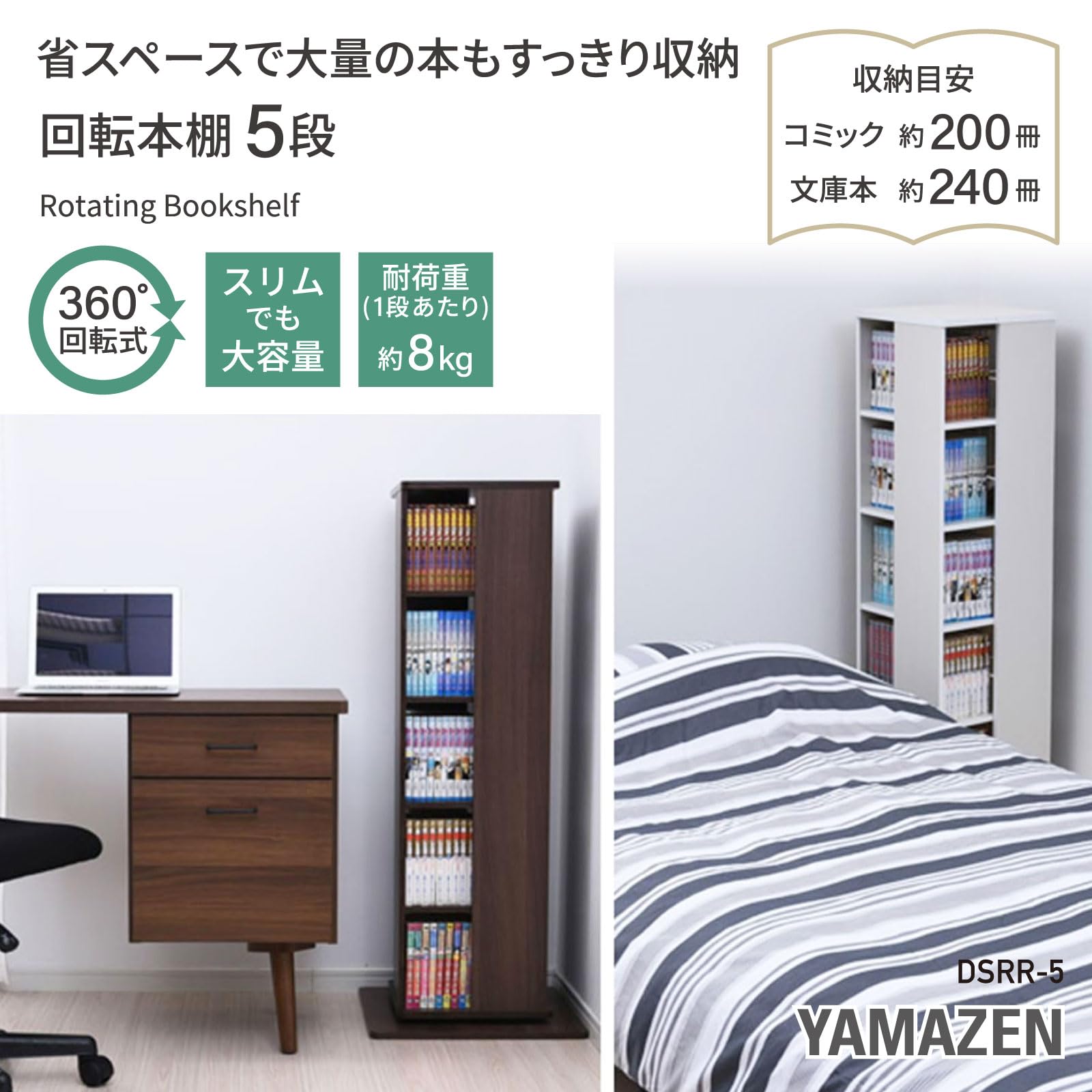 山善(YAMAZEN) 回転本棚 幅45×奥行45×高さ115.5cm 5段 壁付け・角置き可 コンパクト 大容量 組立品 ホワイト 木目調 DSRR-5(JW)