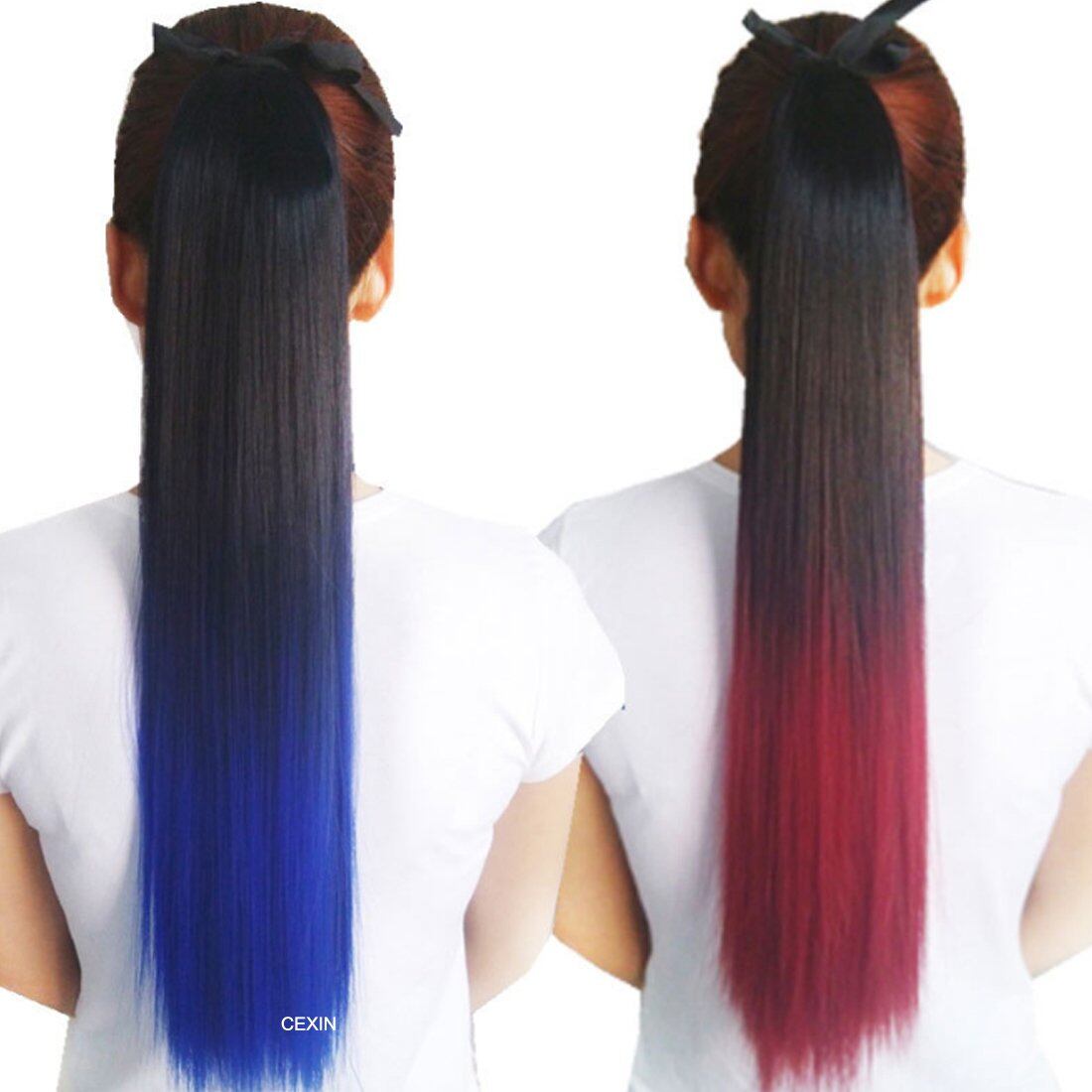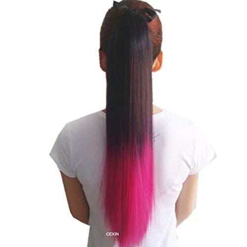 LESUN 部分かつら つけ毛 ウィッグ ポイントウィッグ ポニーテールウィッグ ツートン エクステンション ロング ストレート グラデーションカラーエクステ 取り付け簡単 日常 ヘアカラー6色 長さ:55センチ 多カラーバリエーション (ブラック+ローズレッド)