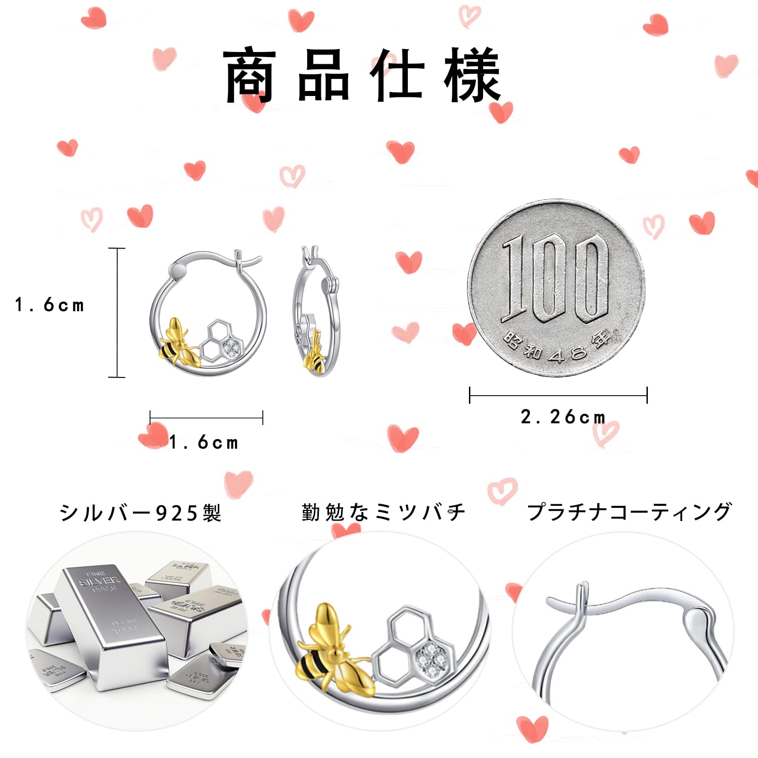 【商品仕様】数量:2個。地金:スターリングシルバー。メッキ:プラチナ。サイズ:1.6cmx1.6cm。付属:収納ケース、銀専用のクロス。注文日から30日の品質があり、いつても気軽にお問い合わせください。【ご注意】※手作りの為、表記のサイズより多少の誤差があります。※写真と少々の色違いがあることをご了承ください。