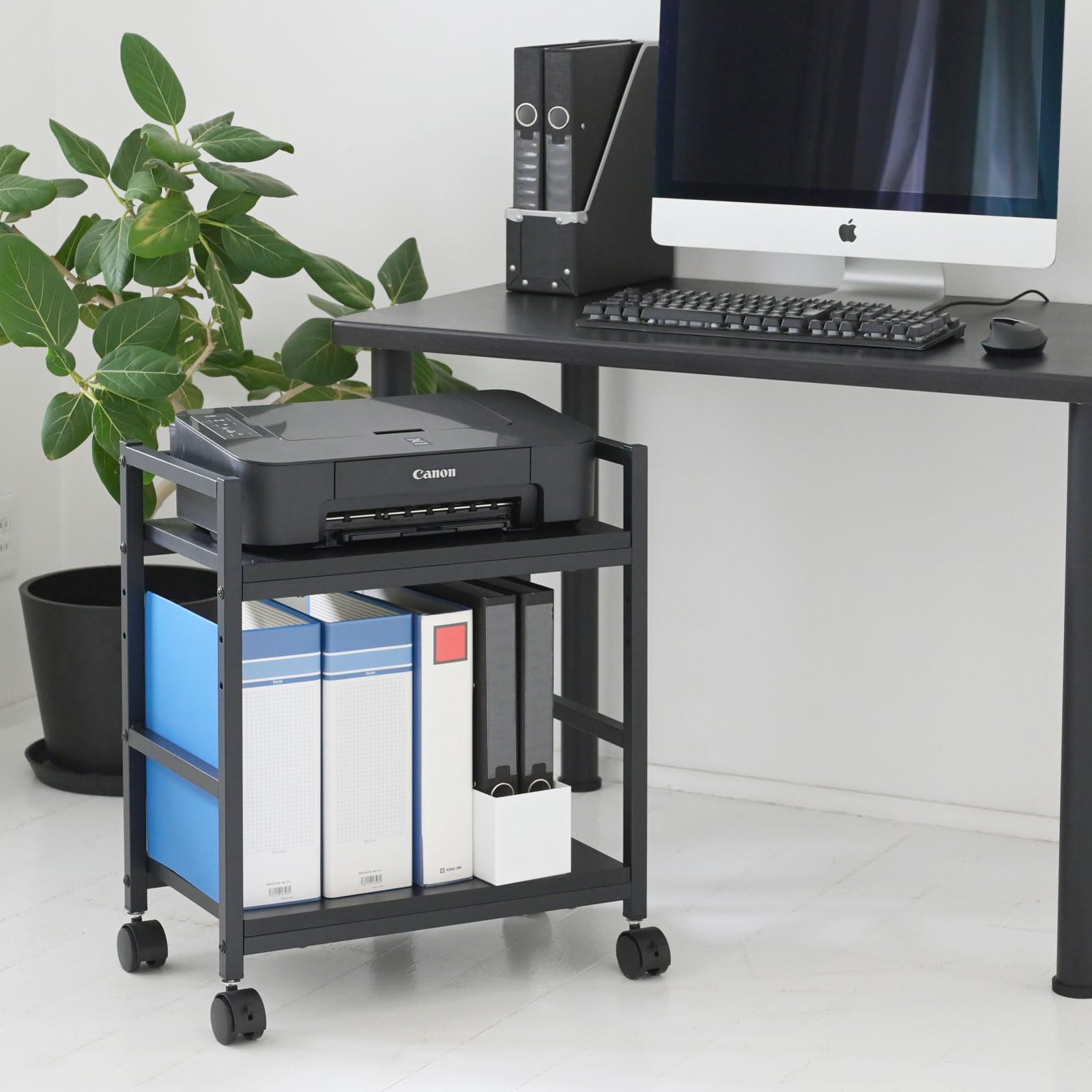 山善(YAMAZEN) ワゴン キャスター付き A4ファイル対応 天板高さ調節可能 サイドテーブル デスク下 収納 幅50×奥行29.5×高さ60.5cm 組立品 ブラック/ブラック MUD-50(BK/SBK)