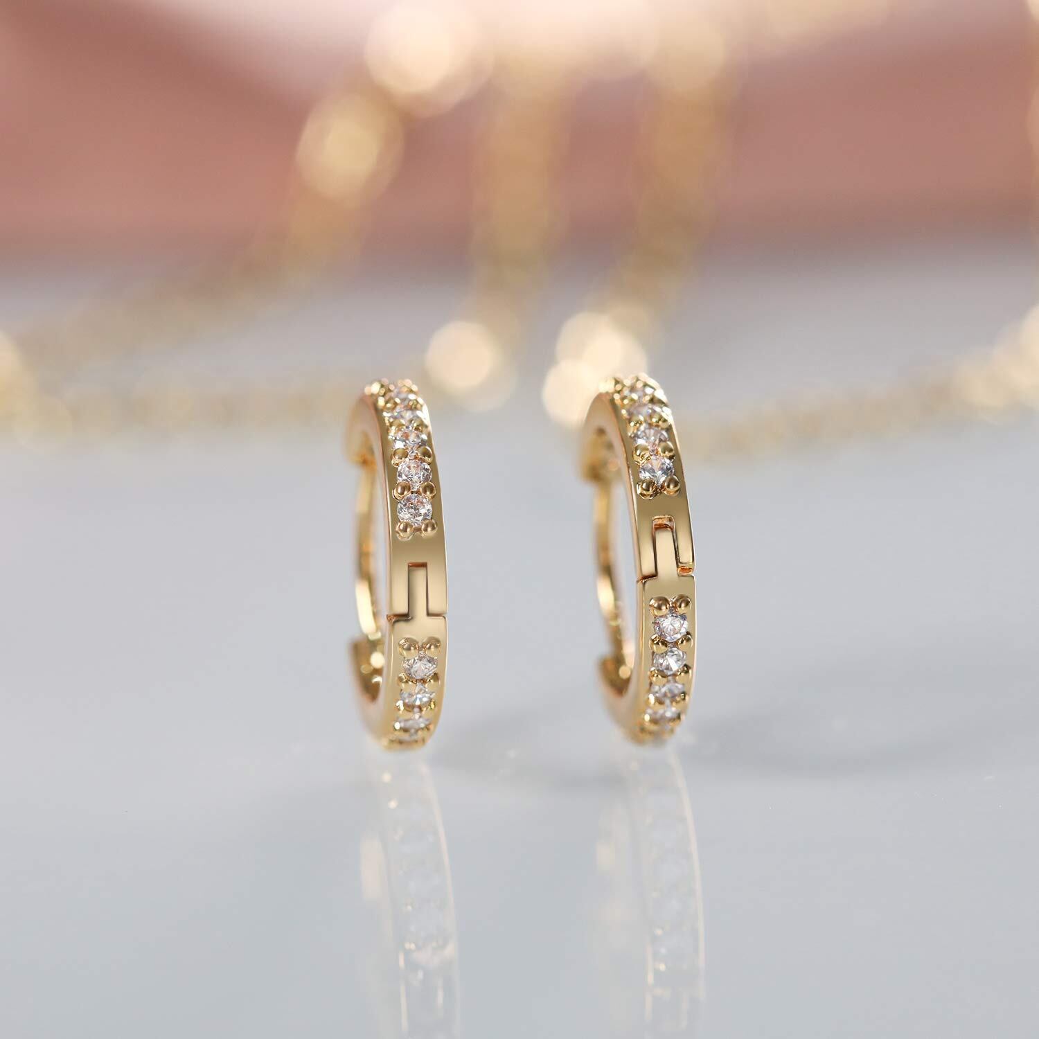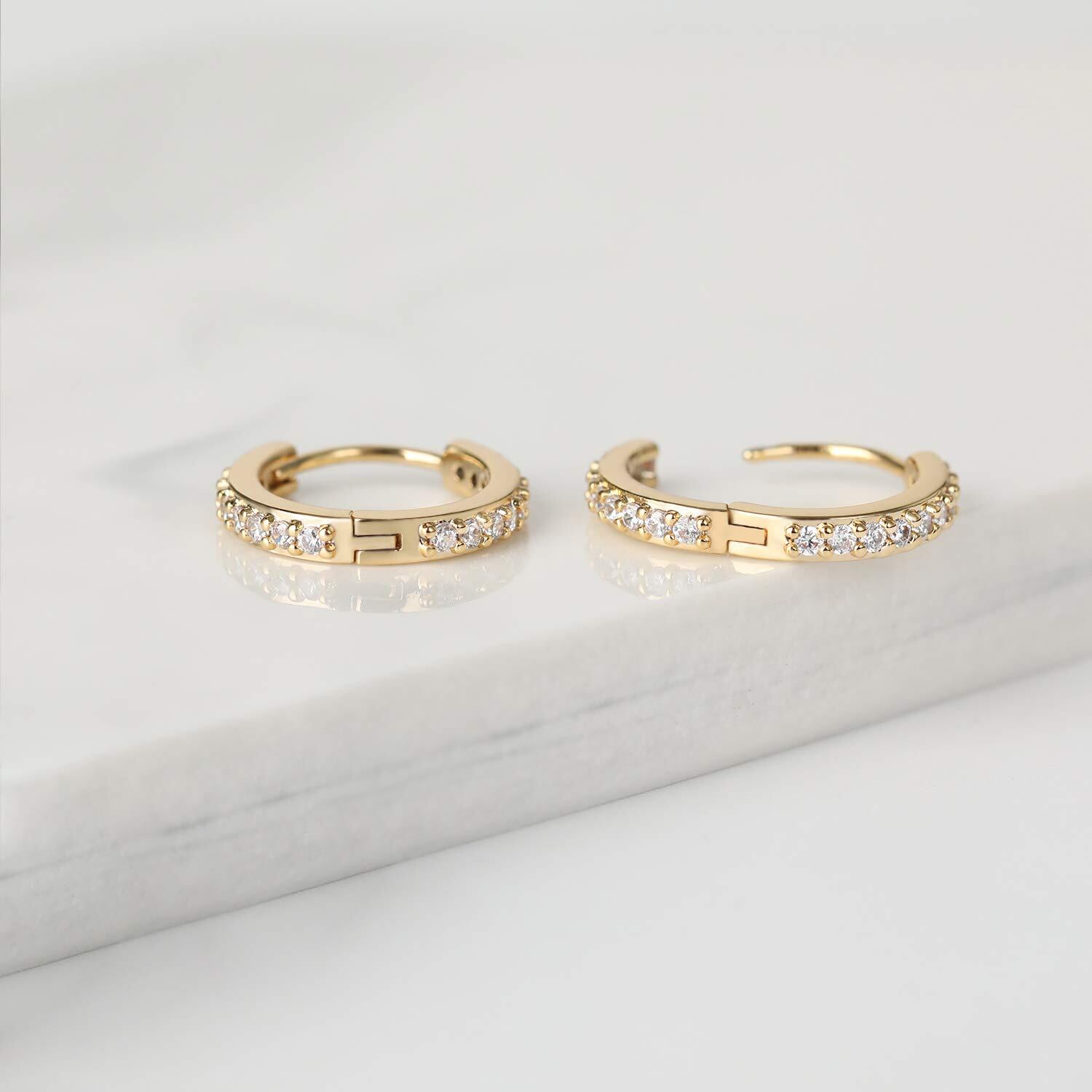 DAISYHOUSE イヤーカフ 18金 ピアス レディース ジルコニア フープリング ノンホールピアス キャッチ不要 金属アレルギー対応 両耳セット 二色 (ゴールド)