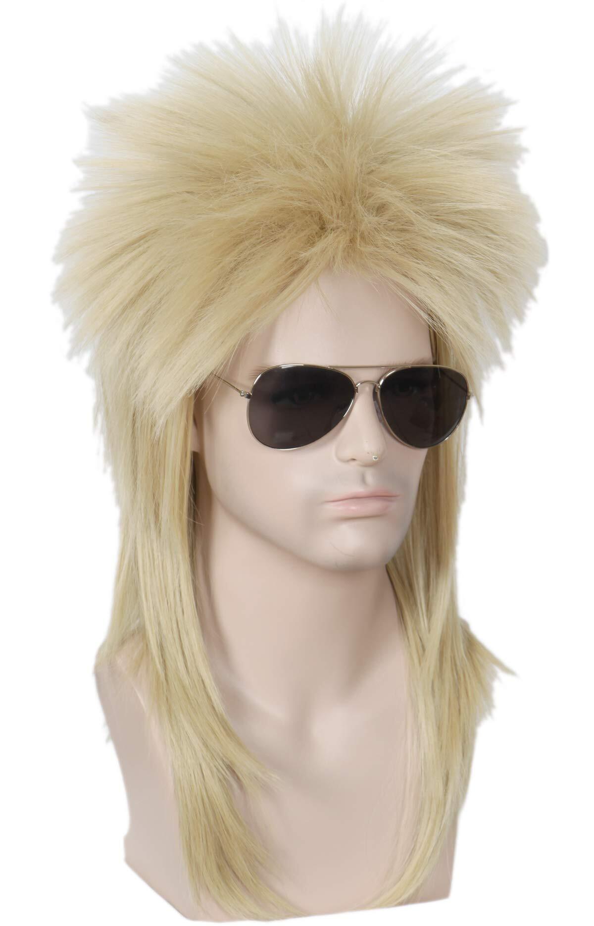Linfairy Heavy Metal Rocker Adult Wig メンズコスチュームヘアアクセサリーヘビーメタルロッカーコスプレロング コスプレ ウィッグ (blonde)