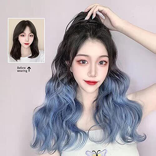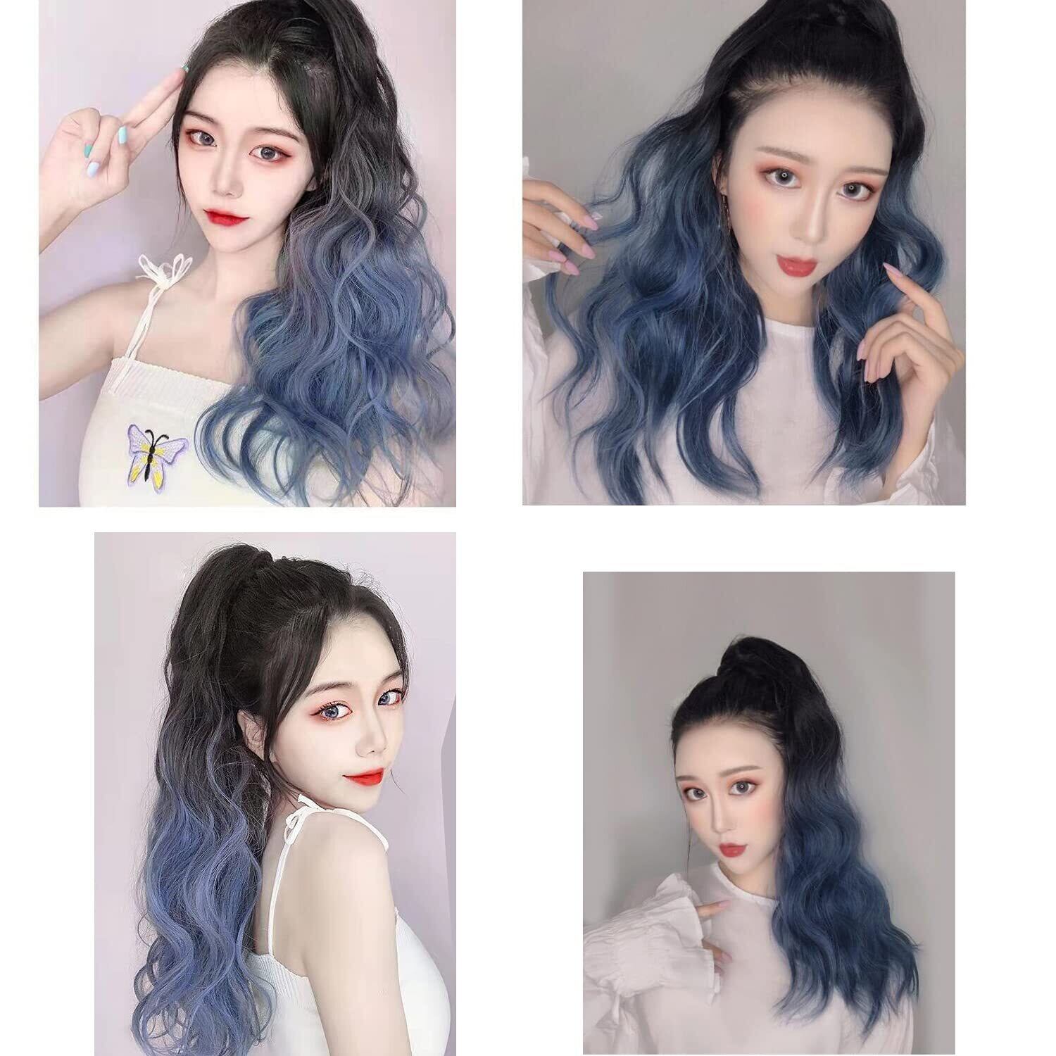 レディース リボン式 グラデーション ポニーテール ウィッグ 巻き髪つけ毛 ロング ヘア エクステ かつらナチュラル ポイントウィッグ 55cm (ブルー, 55cm)