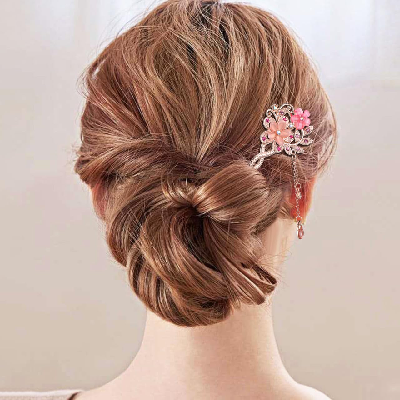 【おしゃれなヘア飾り】かんざしは創造的な八重咲きとタッセルを採用したデザインです。髪型をDIYするのに最適で簡単です。ショッピング、カジュアル、パーティー、お祝いなどで着用することができます。女性向けに設計されていたかんざしです。