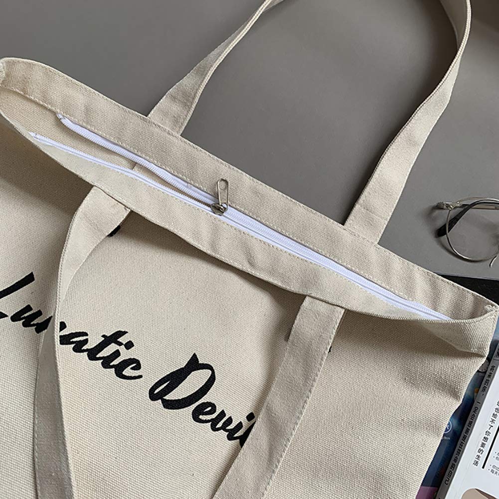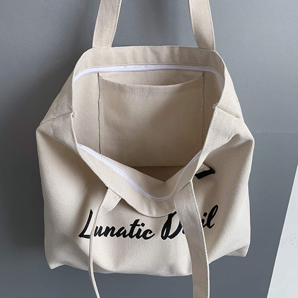 [ザボンチー] かわいいキャンバスバッグ トートバッグ 大容量 肩掛けバッグ 通学 出掛けバッグ ファスナー/ボタン付き