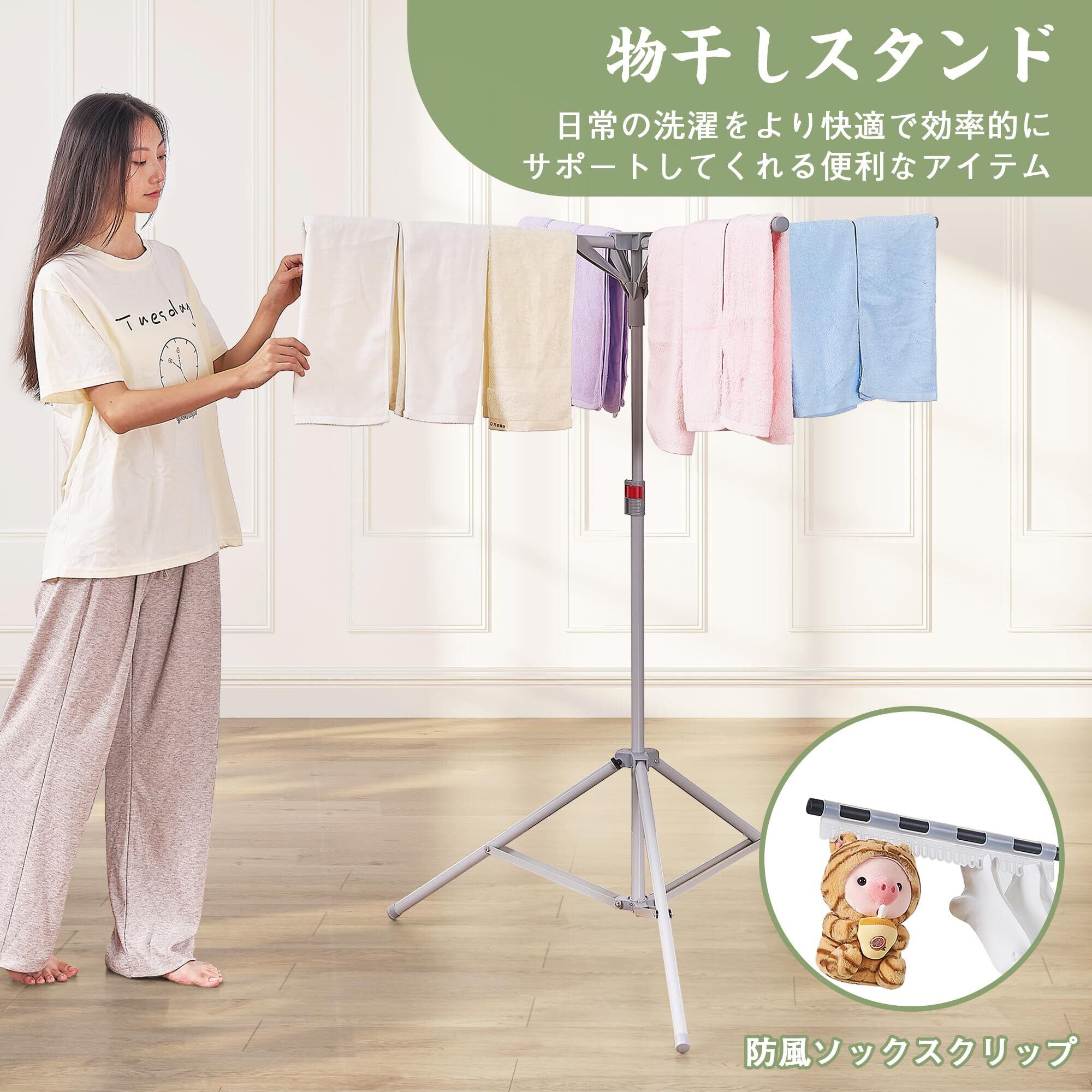 【安定で持ち運びやすい】この物干しラックは、高品質で頑丈な素材を使用しており、長期間の使用において耐久性と安定性を確保します。底部のユニークな三脚構造により、物干しラックの安定性が大幅に向上し、重い衣類を干す際でも揺れたり傾いたりすることを防ぎます。コートや厚手のシーツなど、重いアイテムも簡単に支え、安全に干すことができます。