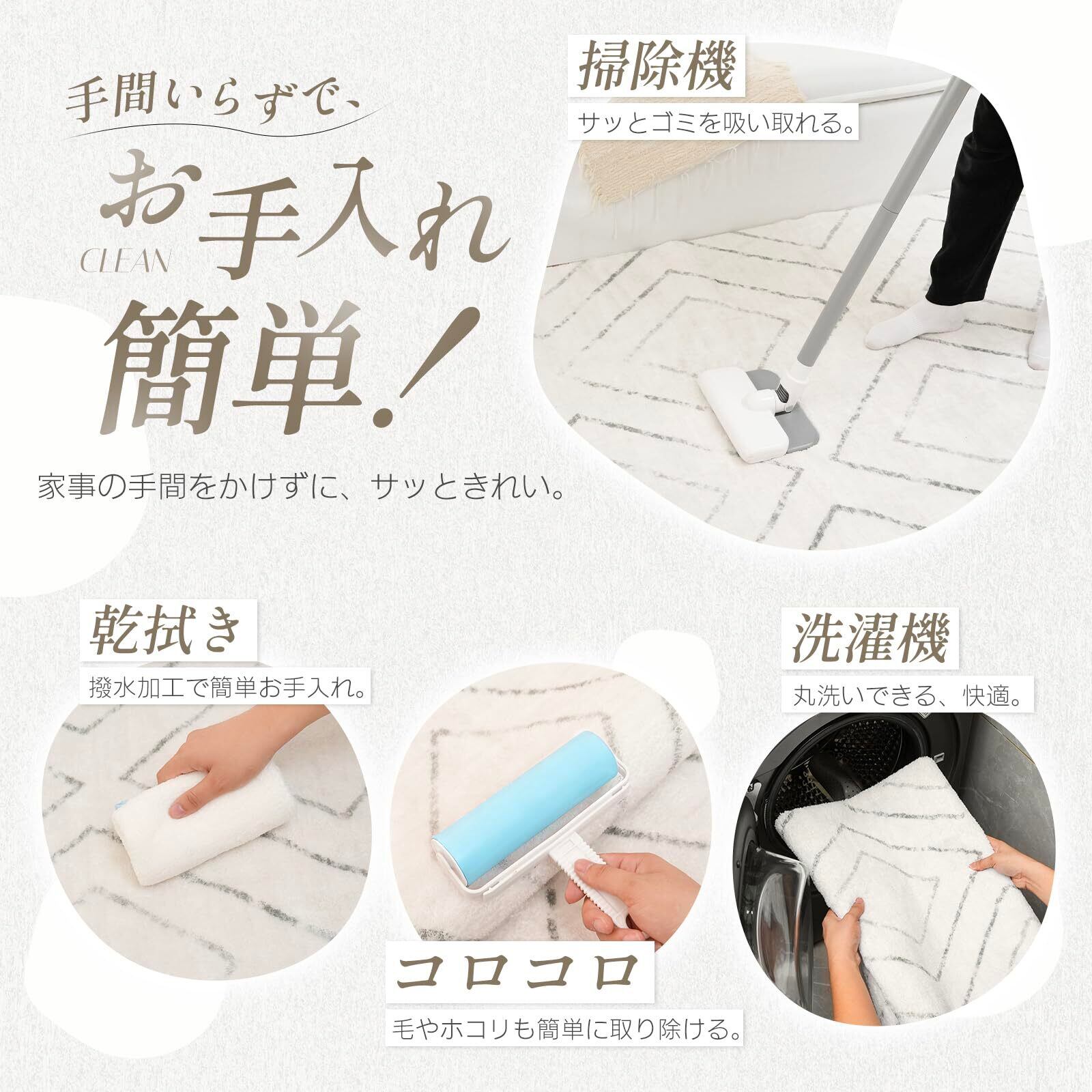 【滑り止め加工&安全設計】 裏面には滑り止め加工が施されており、ズレにくく安心。お子様や高齢者、ペットがいる家庭でも安全に使用可能です。滑り止めの厚みを工夫することで、ラグの上を歩く際も安心感を高めています。