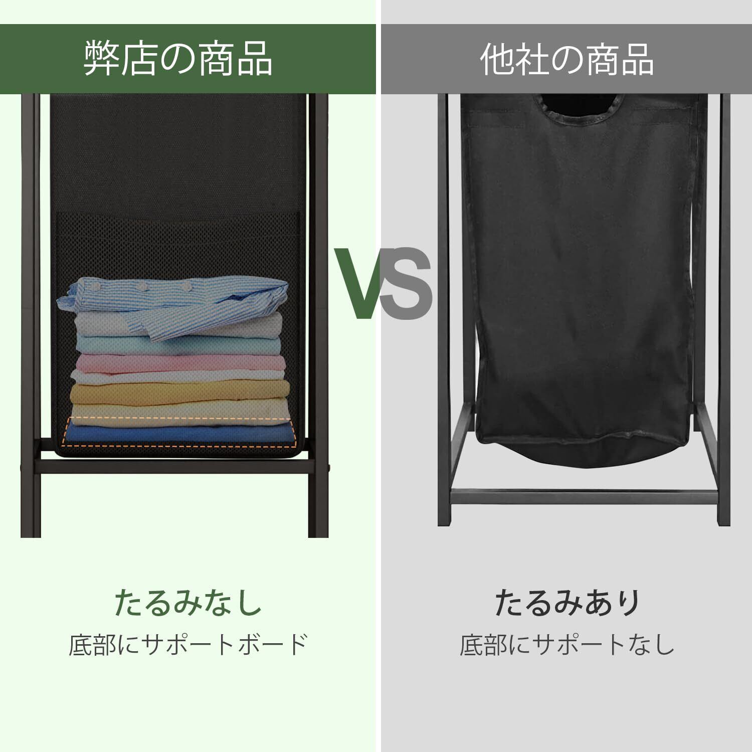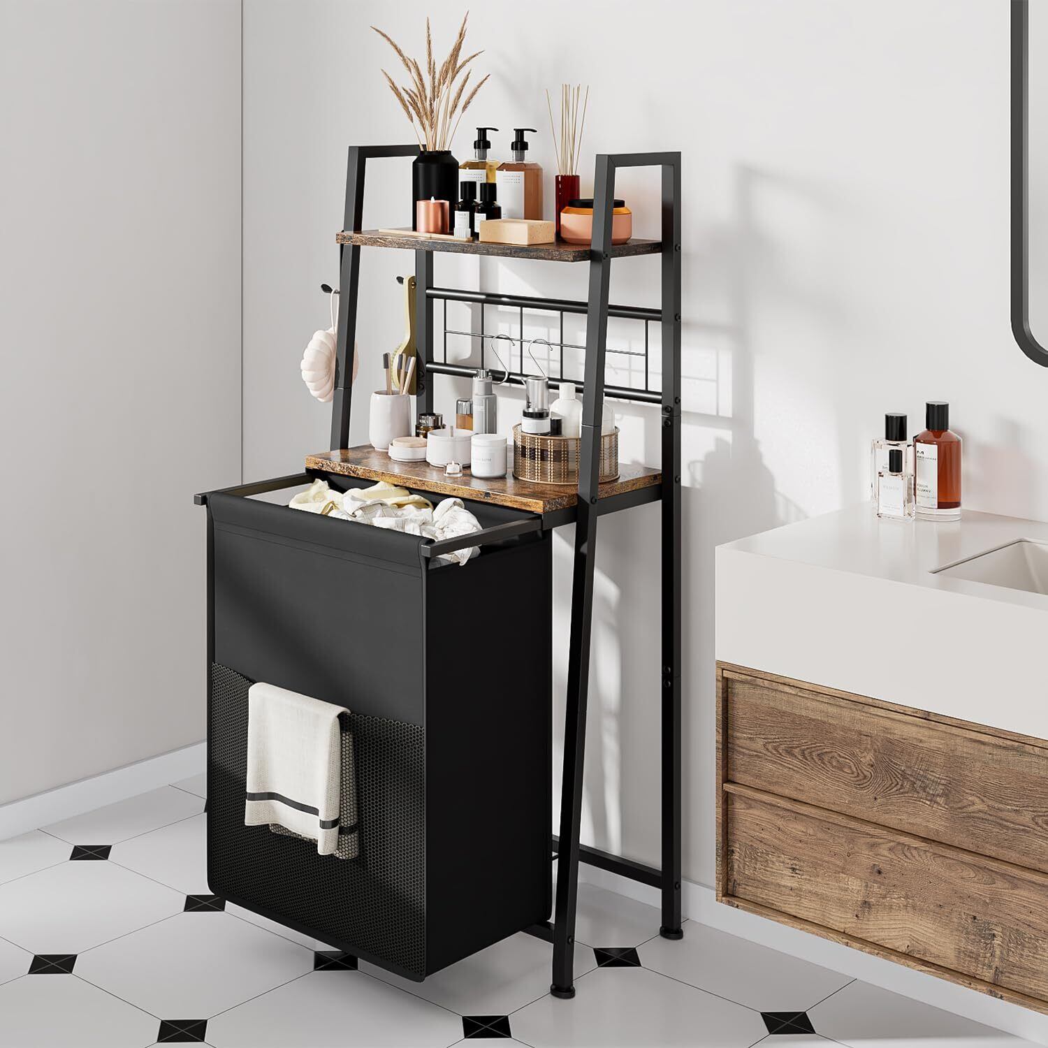引き出し可能で取り外し可能なランドリーバッグ:引き出し可能なランドリーバッグは棚から取り外すことができ、衣類を家の別のエリア(洗濯室や浴室など)に簡単に持ち運ぶことができます。
