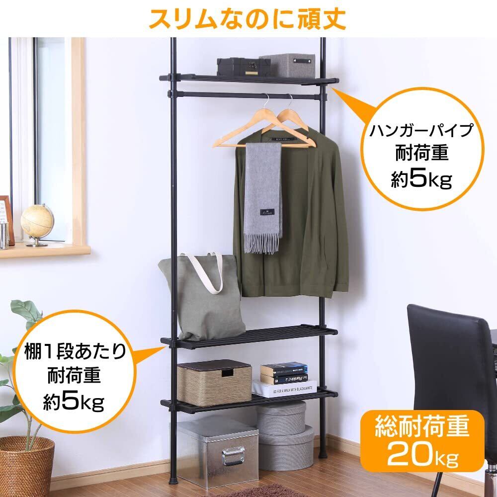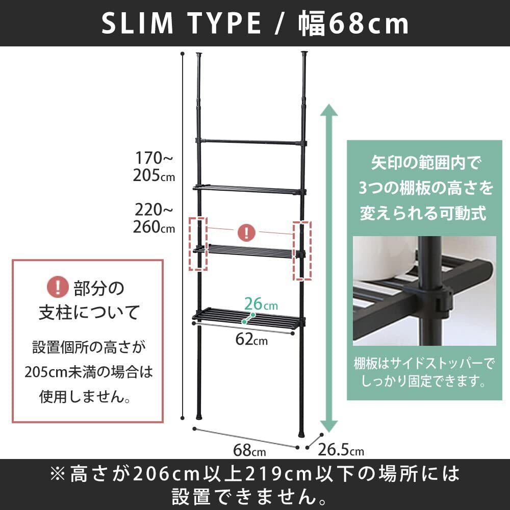 アイリスプラザ ラック 壁面 耐荷重各5kg 天井170-205cm/220-260cm対応 幅68 ブラック ワイド 壁面 スリム TWR-680