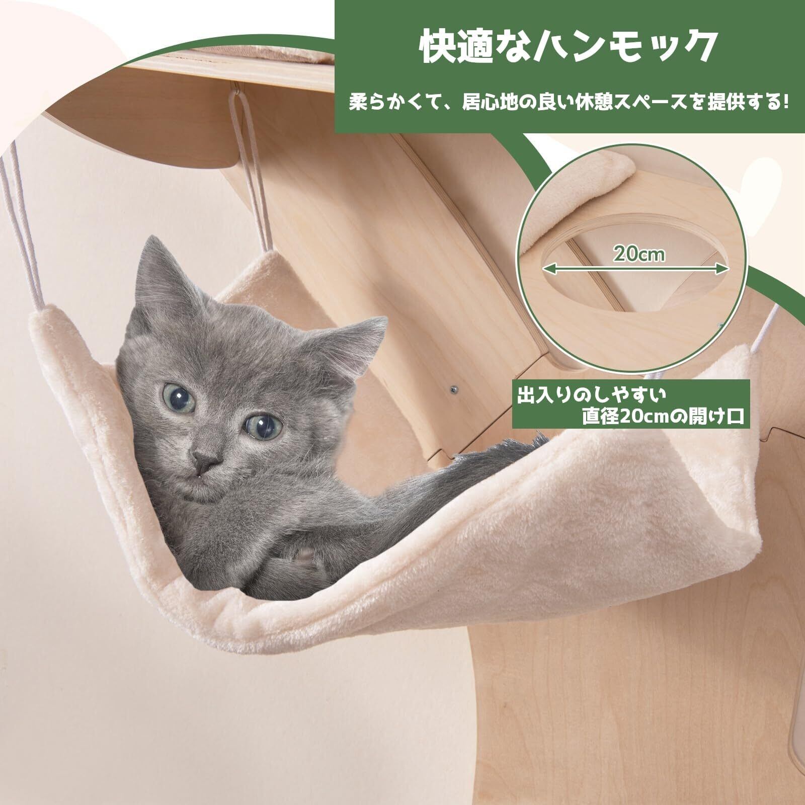 ネコちゃんがプラットフォームの間にジャンプしたり、ハンモックに横になったり、爪とぎに手を添えたり、運動不足やストレスもスッキリ解消できます。