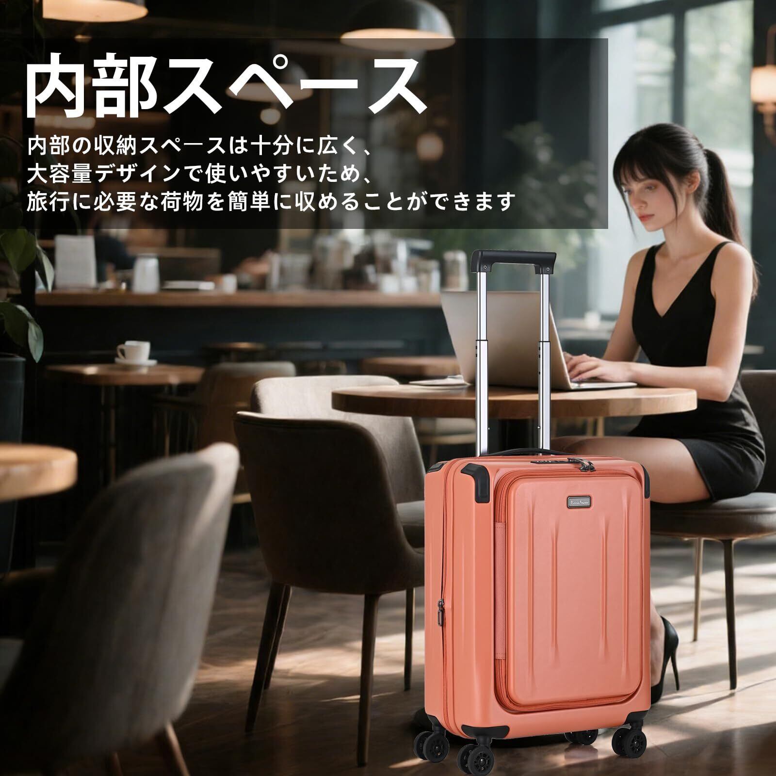 スーツケース 16インチ 20インチ 機内持ち込み可能 フロントオープン ハードキャリー 超軽量 100% PC+ABS アルミフレーム 静音ホイール TSAロック 大容量 ビジネス 旅行 (オレンジ, 20インチ (Mサイズ))
