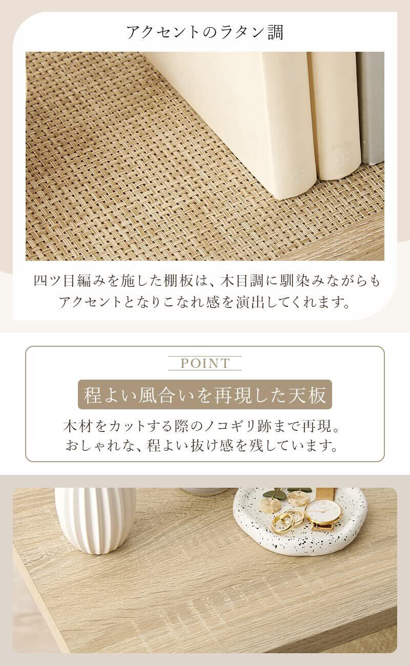 【おしゃれな木目調の仕上げ】:木目調の棚板は本物の木を再現したシートを使用。オープンラックなのでインテリア小物を飾って魅せる収納を楽しめます。