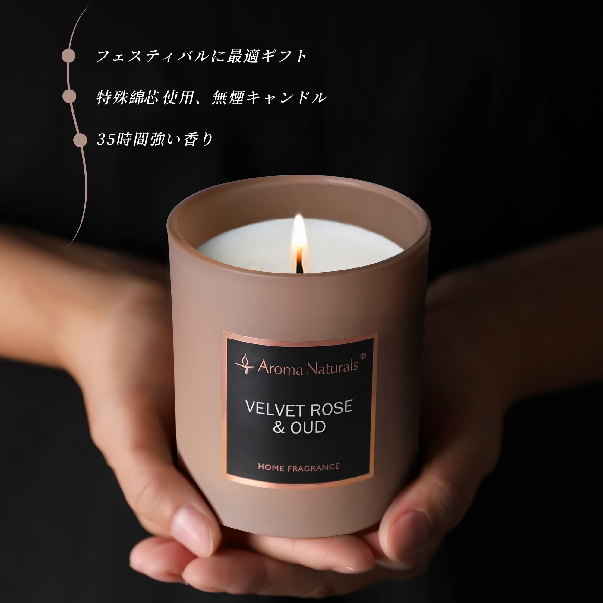 アロマキャンドル 大豆ワックスキャンドル 35時間ジャーキャンドル プレゼント (Velvet Rose & Oud)