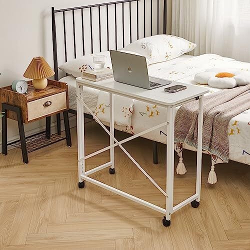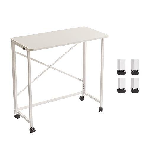 Aibiju 折りたたみ デスク 多機能テーブル 80×40×75/77cm アジャスター付き キャスター付き 収納便利 角が丸い オフィスデスク pcデスク 省スペース 白 YD-TM002W