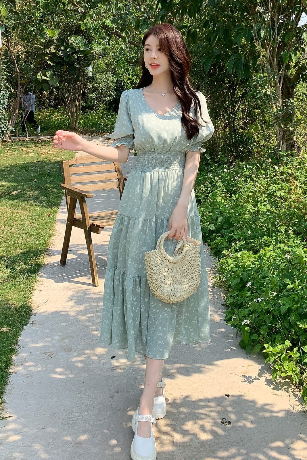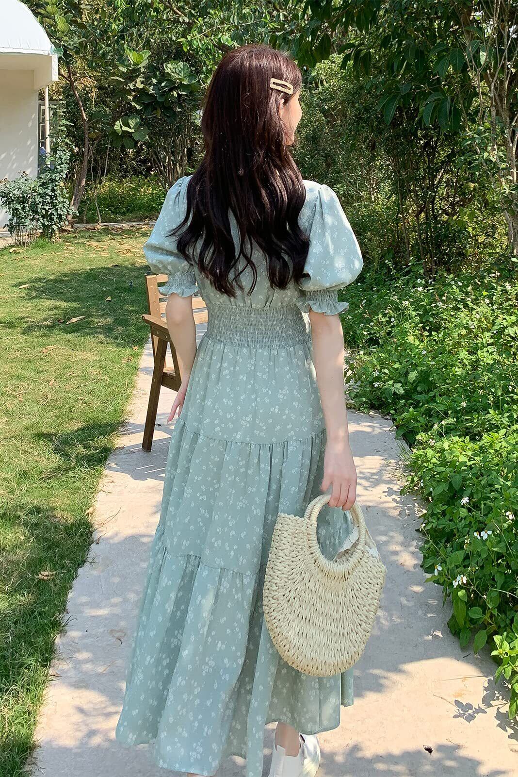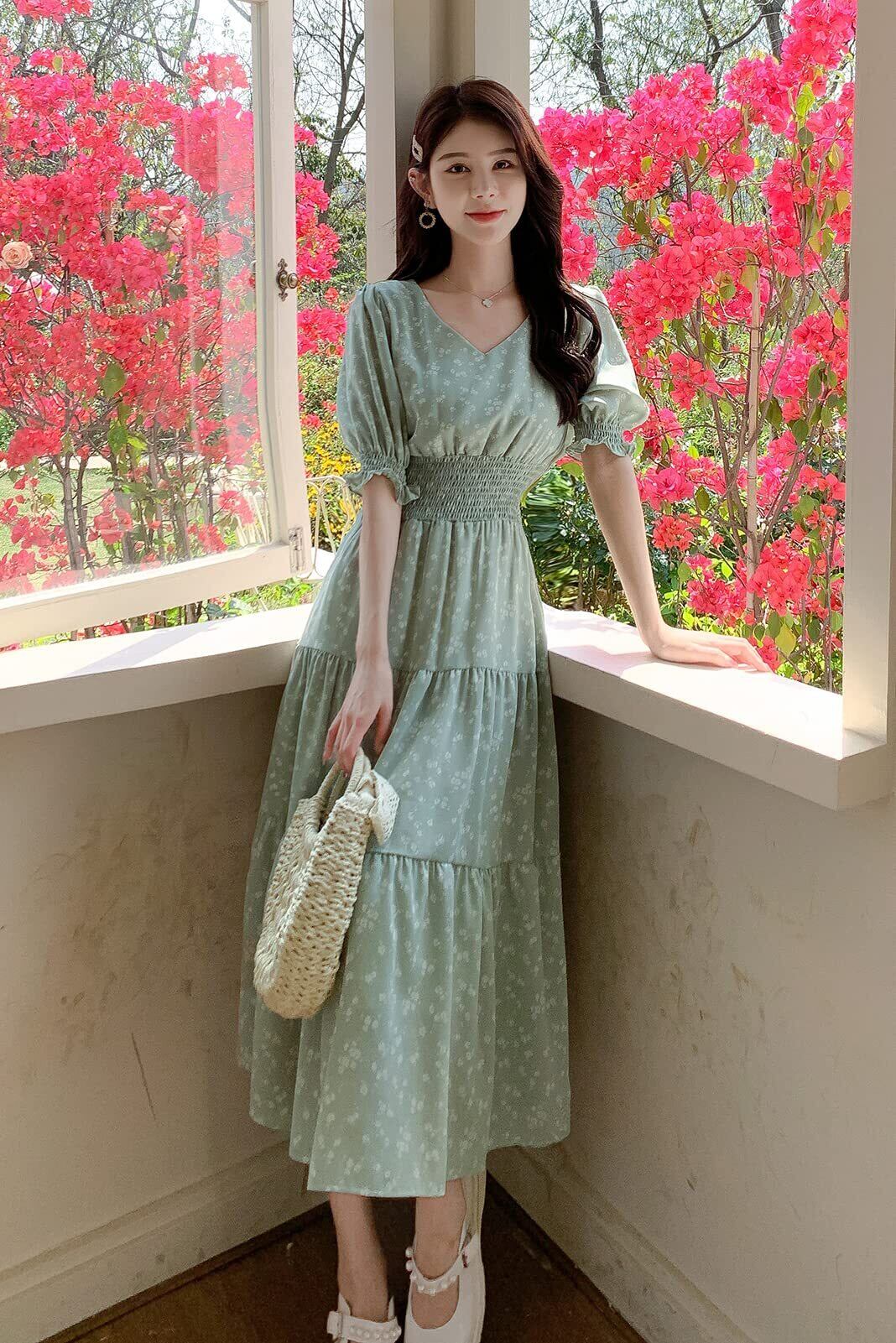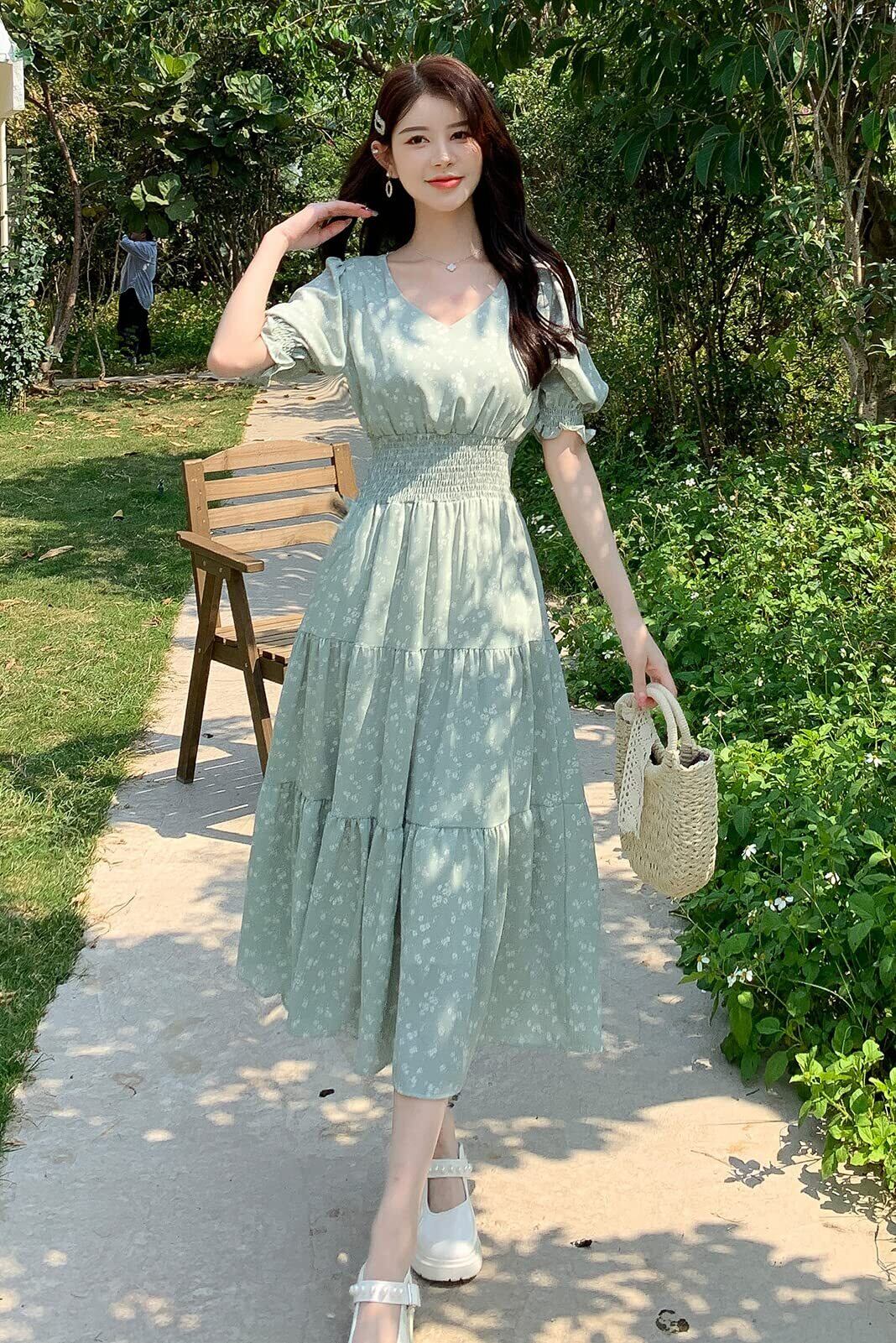 ふわふわで透け感のあるパフスリーブは大人可愛い感をUP!ミディアム丈花柄ワンピースで夏を涼しく華やかに過ごせます。フォーマル場合もリゾートも違和感なく、適合しています。