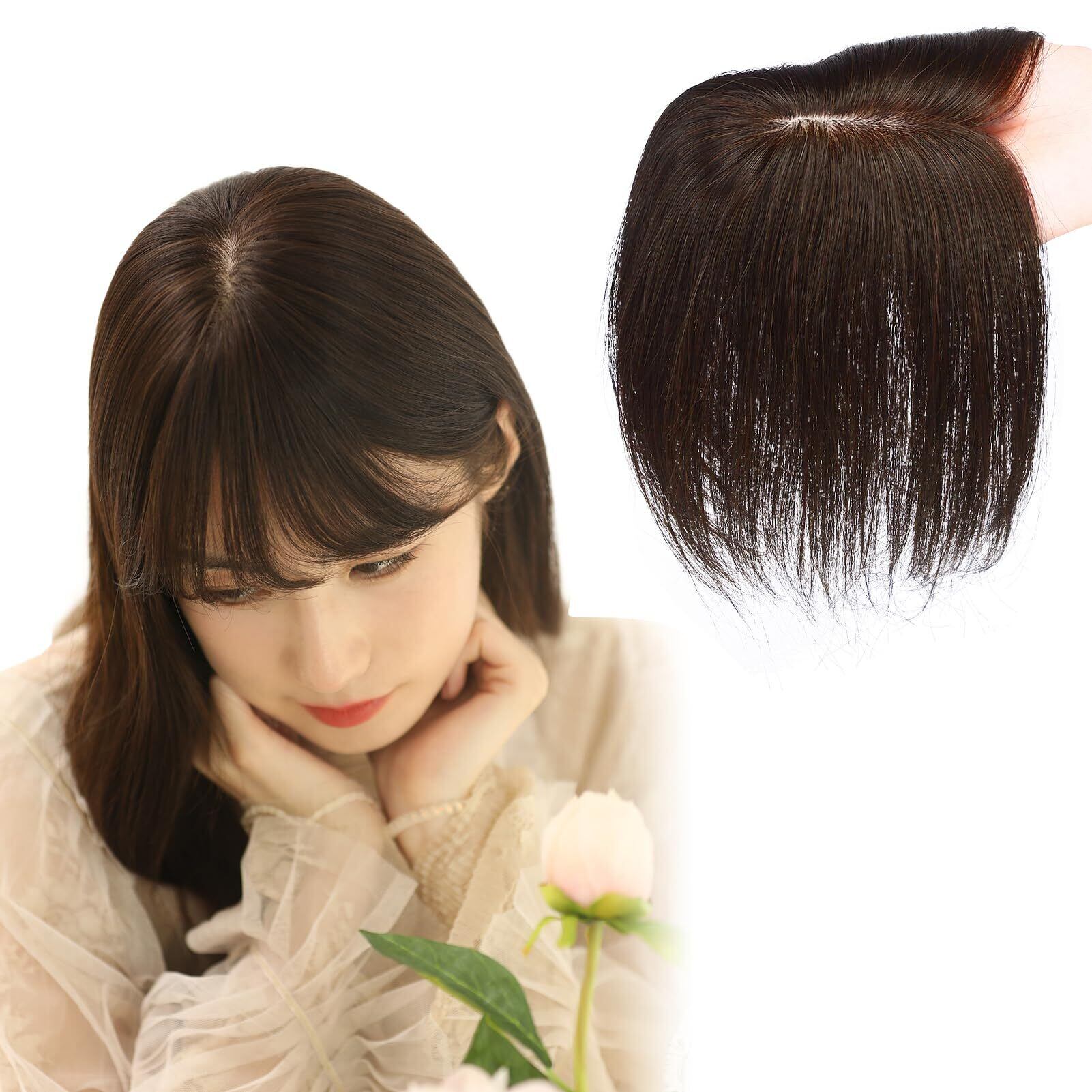 HIYE 部分ウィッグ 人毛100% 人工皮膚 総手植え 分け目自由 医療用 レディース 通気 超自然 ストレート ヘアピース 頭頂部カバー 増毛 薄毛 脱毛隠し ネットサイズ横7cm縦10cm ぱっつんバング (20cm, 栗色)
