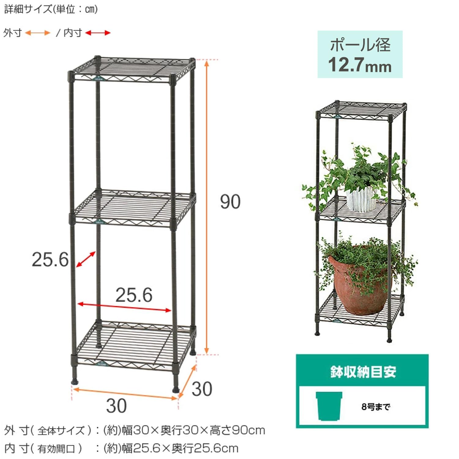 ドウシシャ ルミナス ガーデンラック 幅30 3段 屋外OK サビにくい スリムスチールラック 可変棚 プランターラック フラワースタンド 園芸 観葉植物 全体耐荷重90kg 幅30×奥行30×高さ90cm ポール径12.7mm GR303090-3