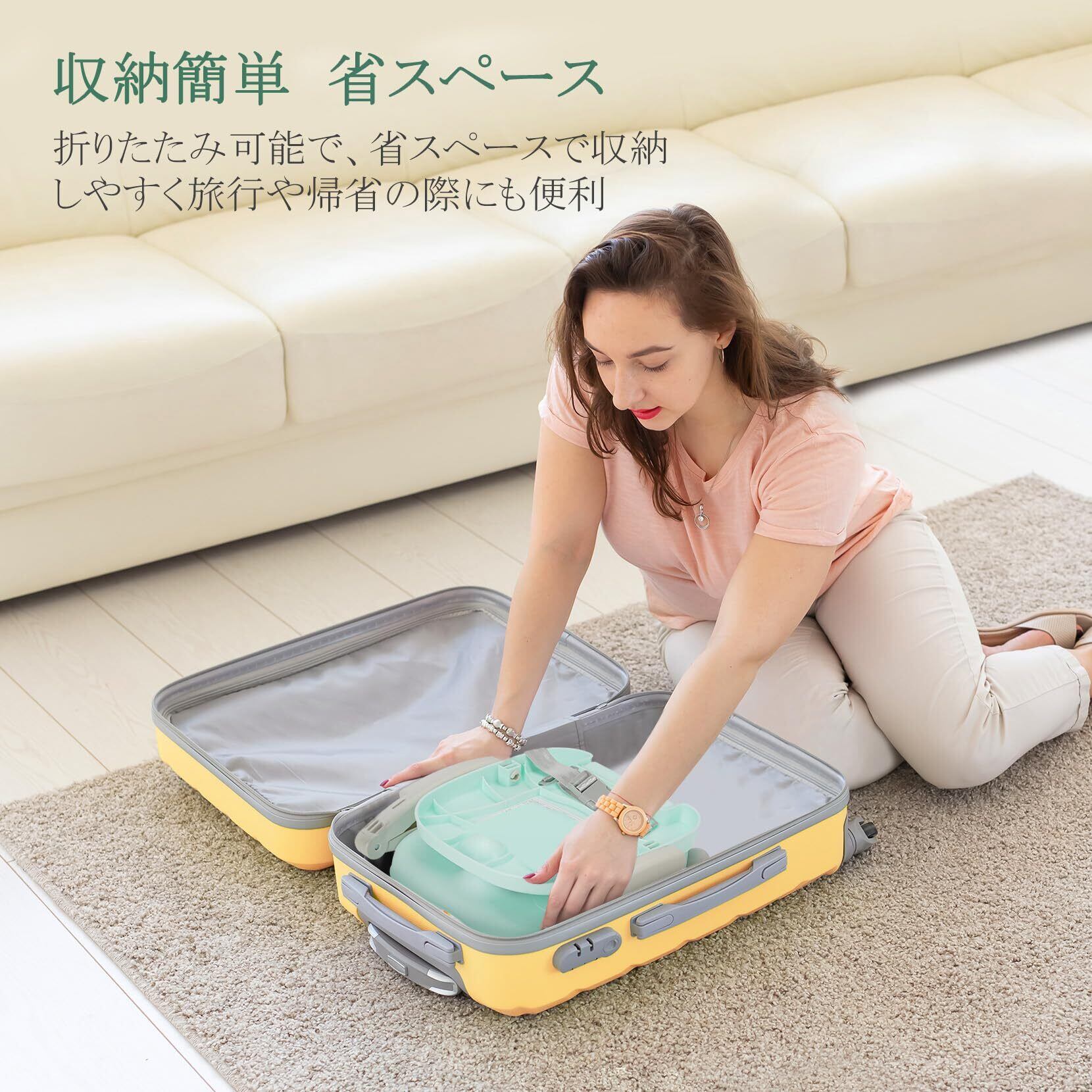 軽くて、帰省、外出、旅行など時に、折畳って、コンパクトになって、手持ちで運ぶ便利です。