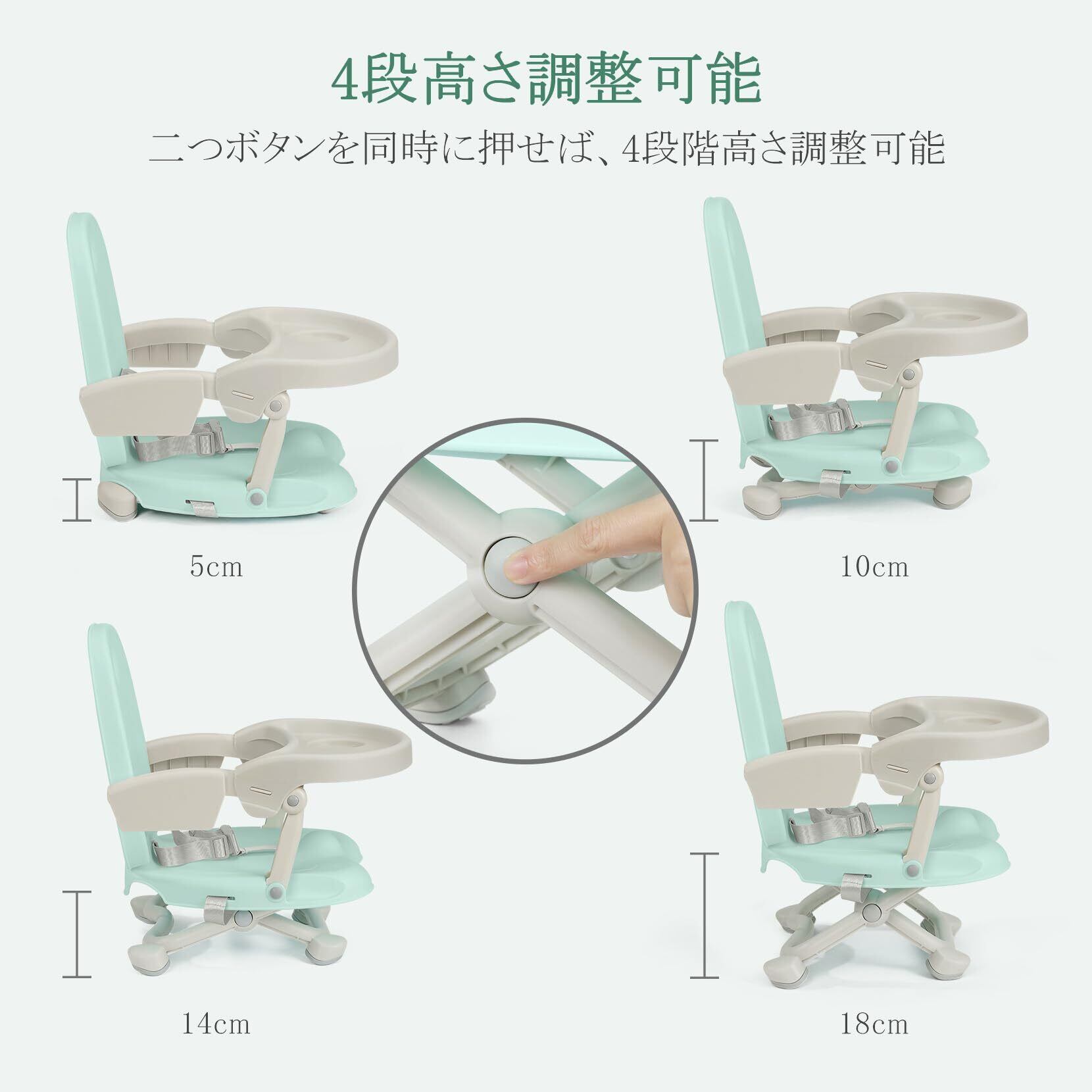 YOLEO ベビーチェア ローチェア 赤ちゃん椅子 ベビーローチェア お食事椅子 多機能 ベビーイス 幼児椅子 ブースターチェア 高さ調節可能 折りたたみ 安全ベルト付き 外出お持ち便利(グリーン)