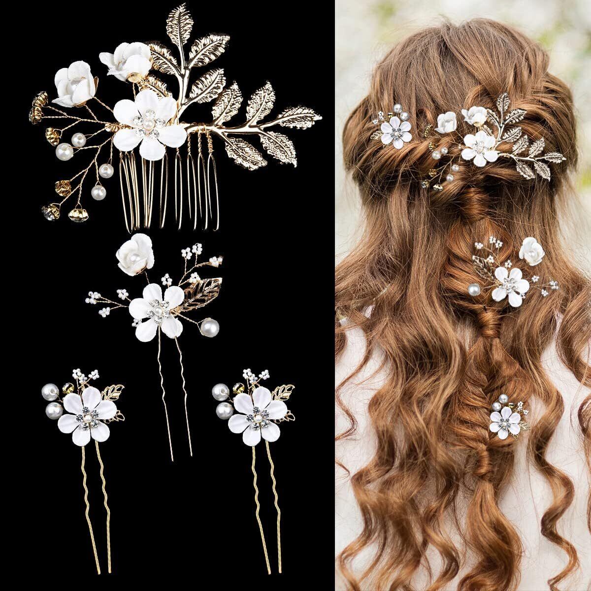 4点セット 髪飾り 成人式 和風 花飾り和装 ヘアアクセサリー 成人式髪飾り 七五三 花見 夏祭り 母の日 卒業式 入学式 花火大会 着物 結婚式 花嫁 披露宴 浴衣 和装 (ホワイト4点)