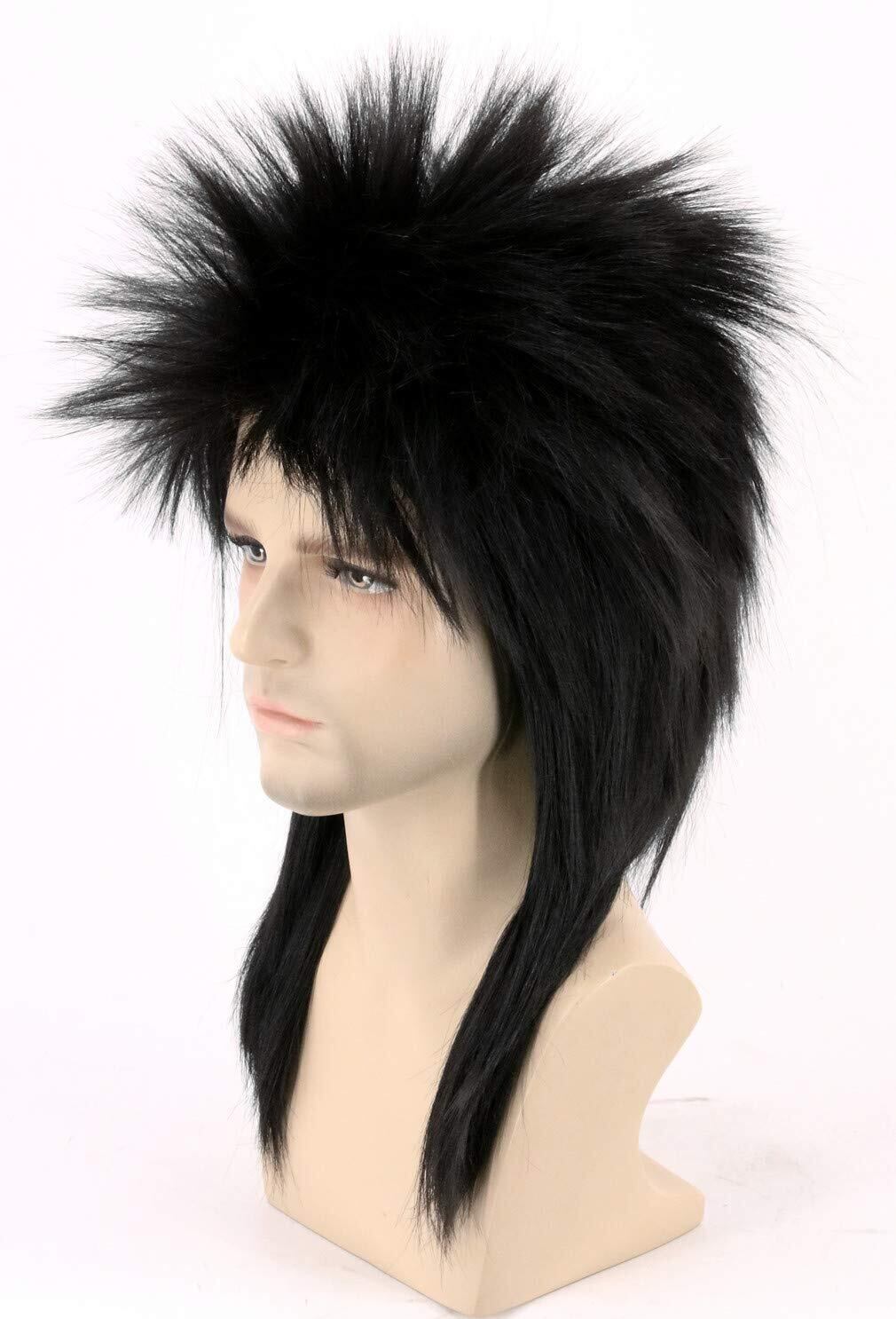 Topcosplay メンズ ウィッグ ロング ボレット ハロウィン コスプレ パンク ロッカー ウィッグ 衣装パーティー 仮装用 イベント (ブラック)