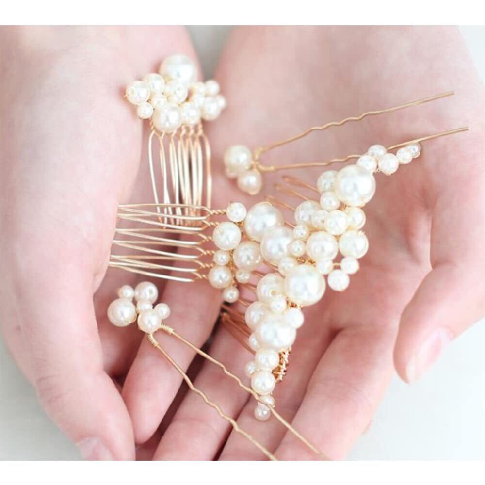 【商品内容】5個セット、大きいパールヘアアクセサリー*1、小さいパールヘアアクセサリー*2、パールヘアピン*2。