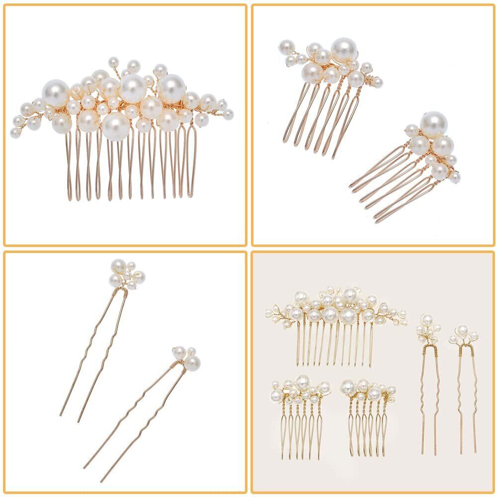 DFsucces パール 髪飾り ヘッドドレス Uピン ヘアピン かんざし 和装 撮影 結婚式 ウェディング パーティー 花嫁などの髪飾り用 5個セット (ゴールド)