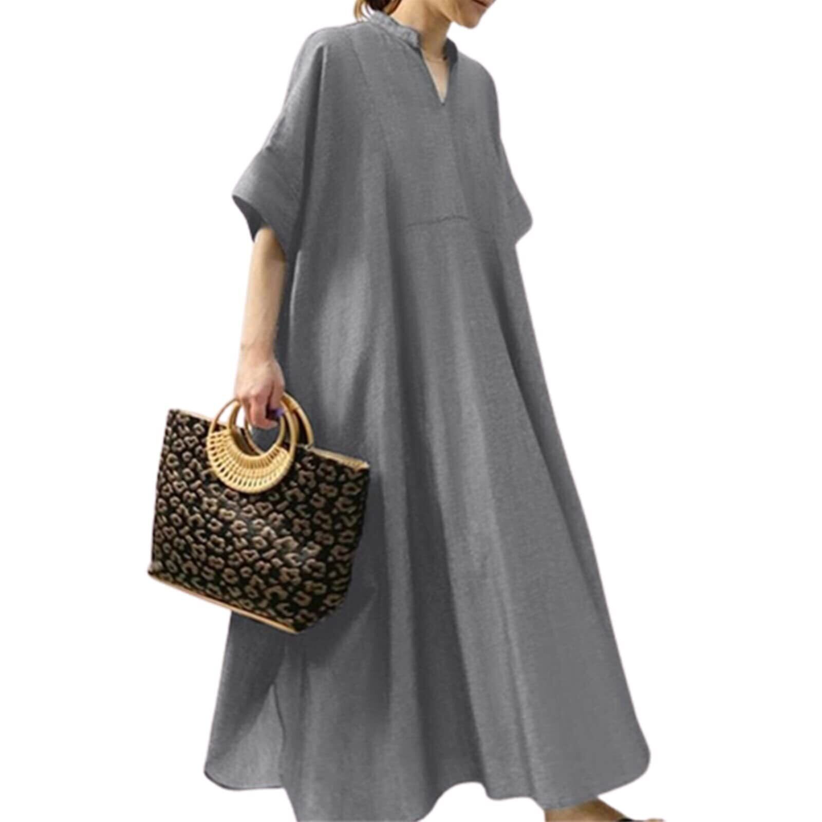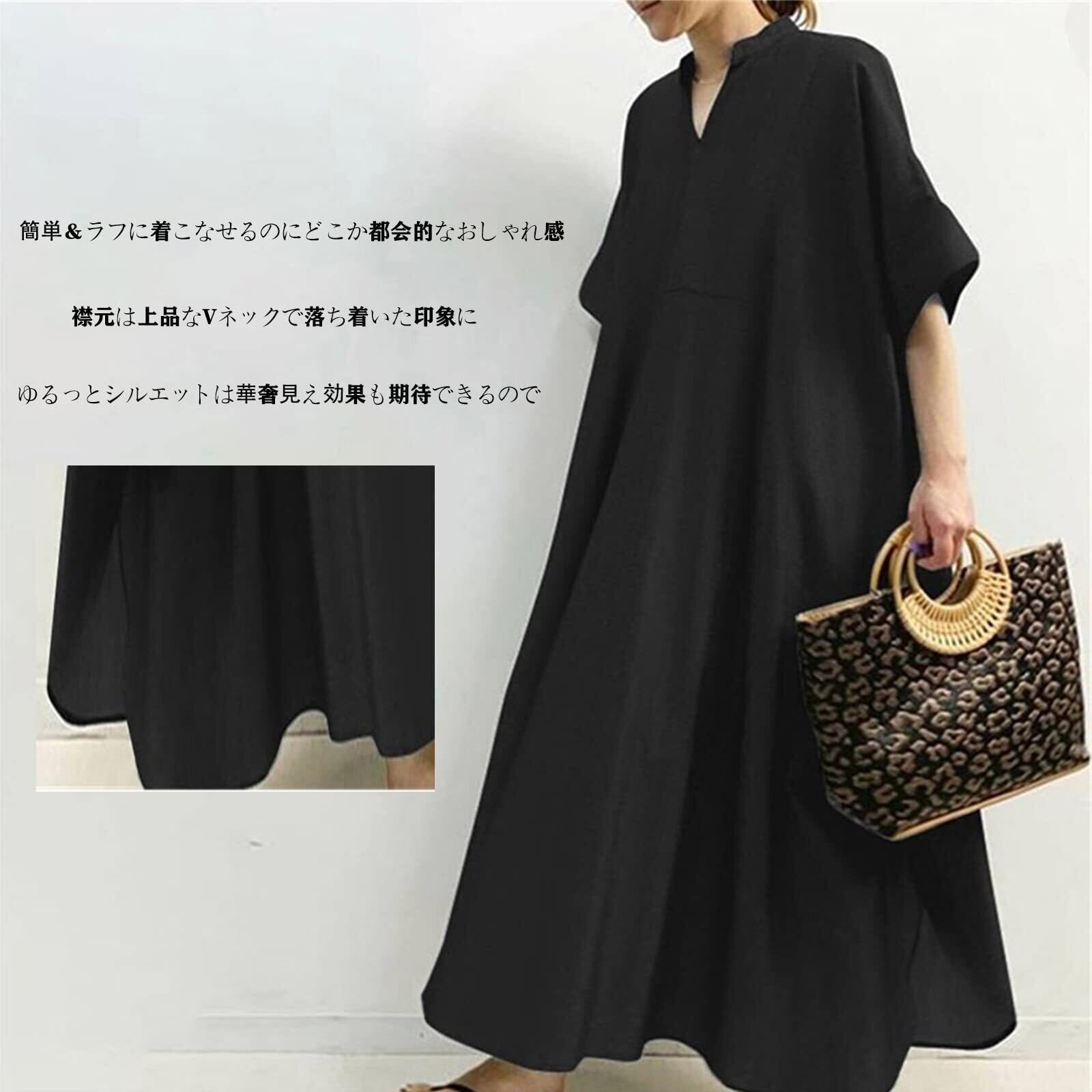 [KumiModa] ワンピース レディース 半袖 ゆったり ロングワンピース Vネック 大きいサイズ夏 体型カバー 着痩せカジュアル 無地 ドレス レディース 春夏秋 お出かけ 通勤
