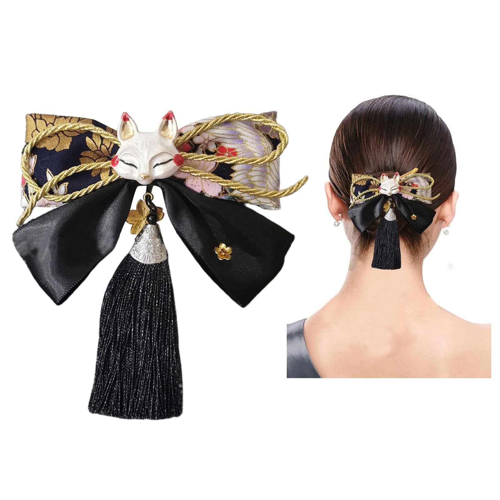 和風 和装 着物 髪飾り和風美人 髪飾り 桜柄 和装小物 可愛い 狐の面 ヘアアクセサリー ファッション おしゃれ 七五三 お宮祭り 成人式髪飾り 花火大会 結婚式入学 (黒)