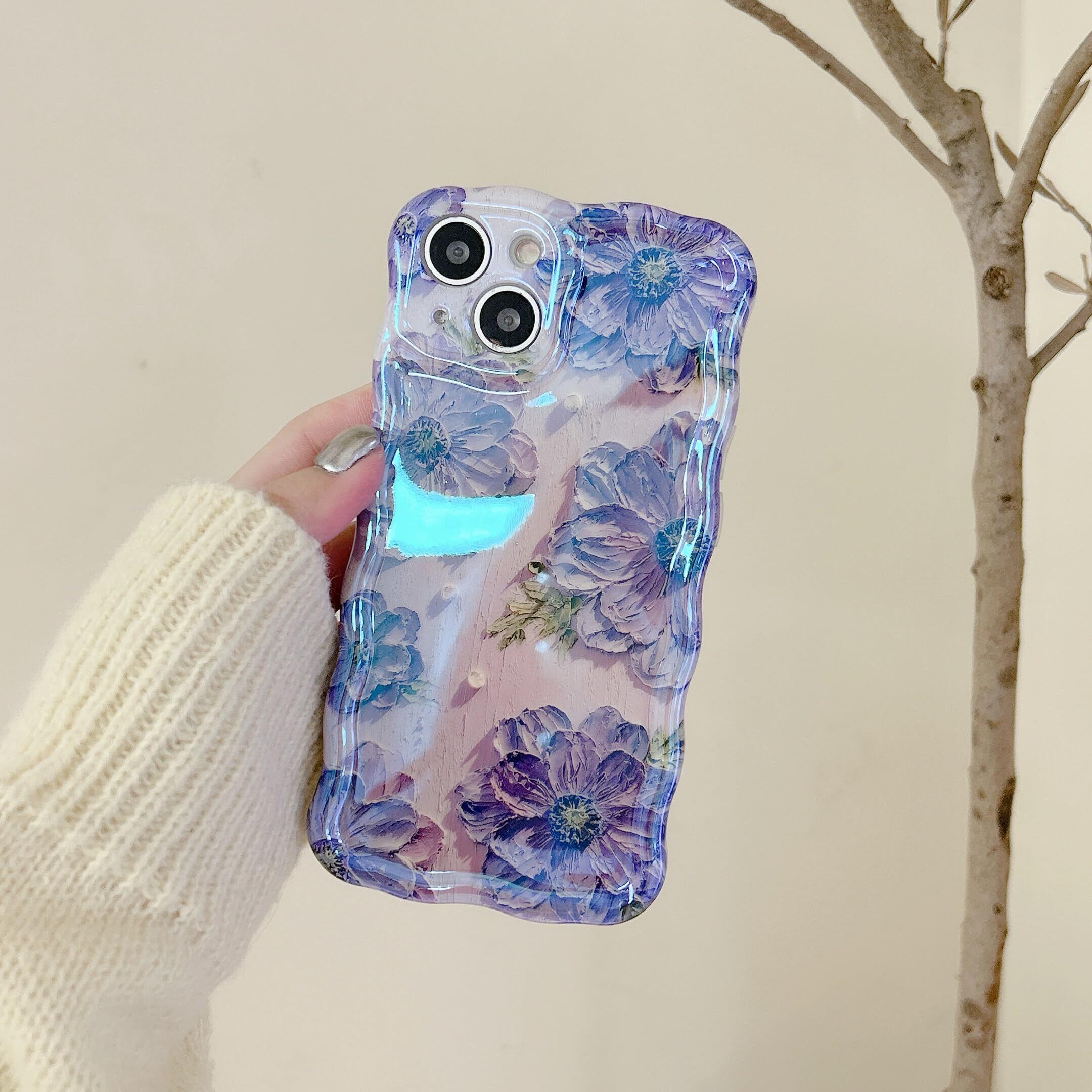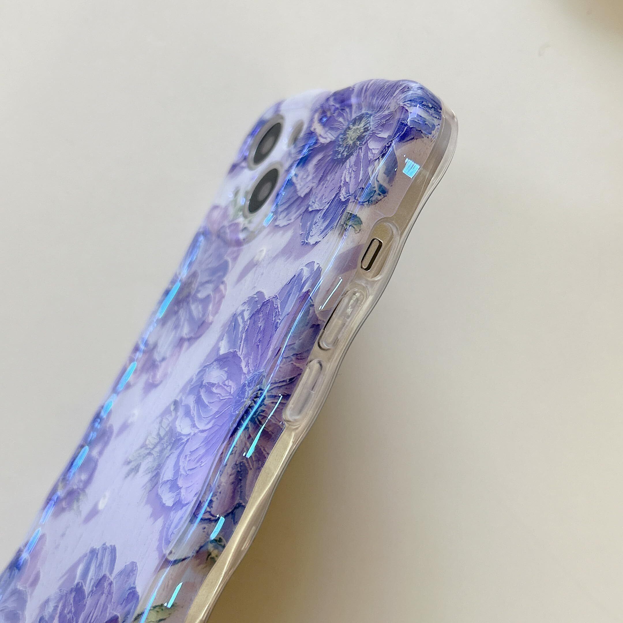 QLTYPRI iPhone 13ケースTPUカバー おしゃれ 韓国 可愛い 花柄 薄型 軽量 耐衝撃 スマホケース ワイヤレス充電対応 ストラップホール付き アイフォン13 ケース 6.1インチ 対応 - パープル