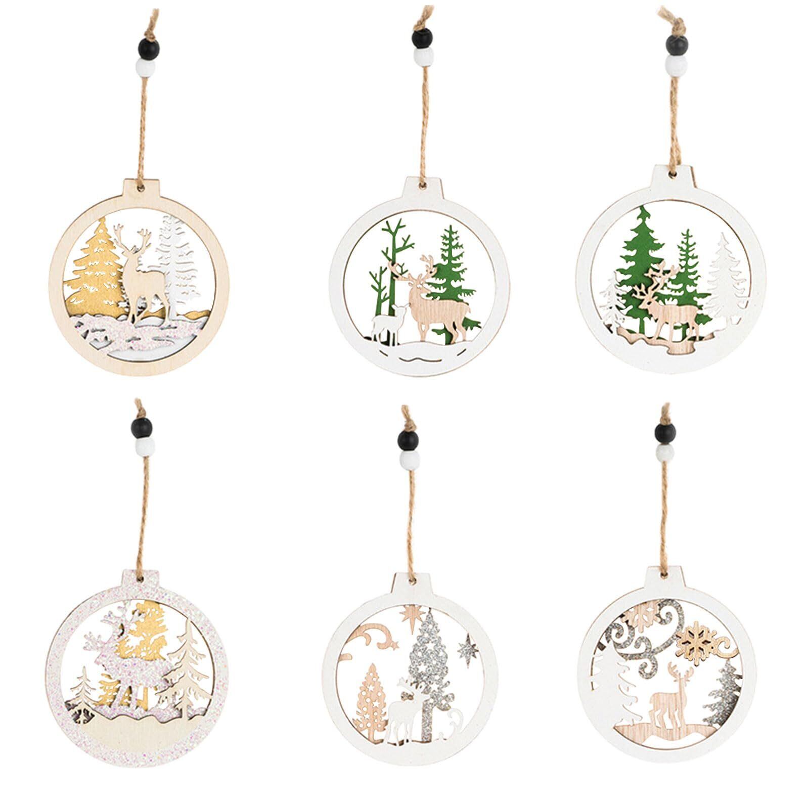 【クリスマスツリーオーナメント】クリスマスのヘラジカとツリーの3D透かし彫りのクリスマス木製吊り飾りの6種類のデザインのセットです。クリスマスツリーのコーディネートに最適です。