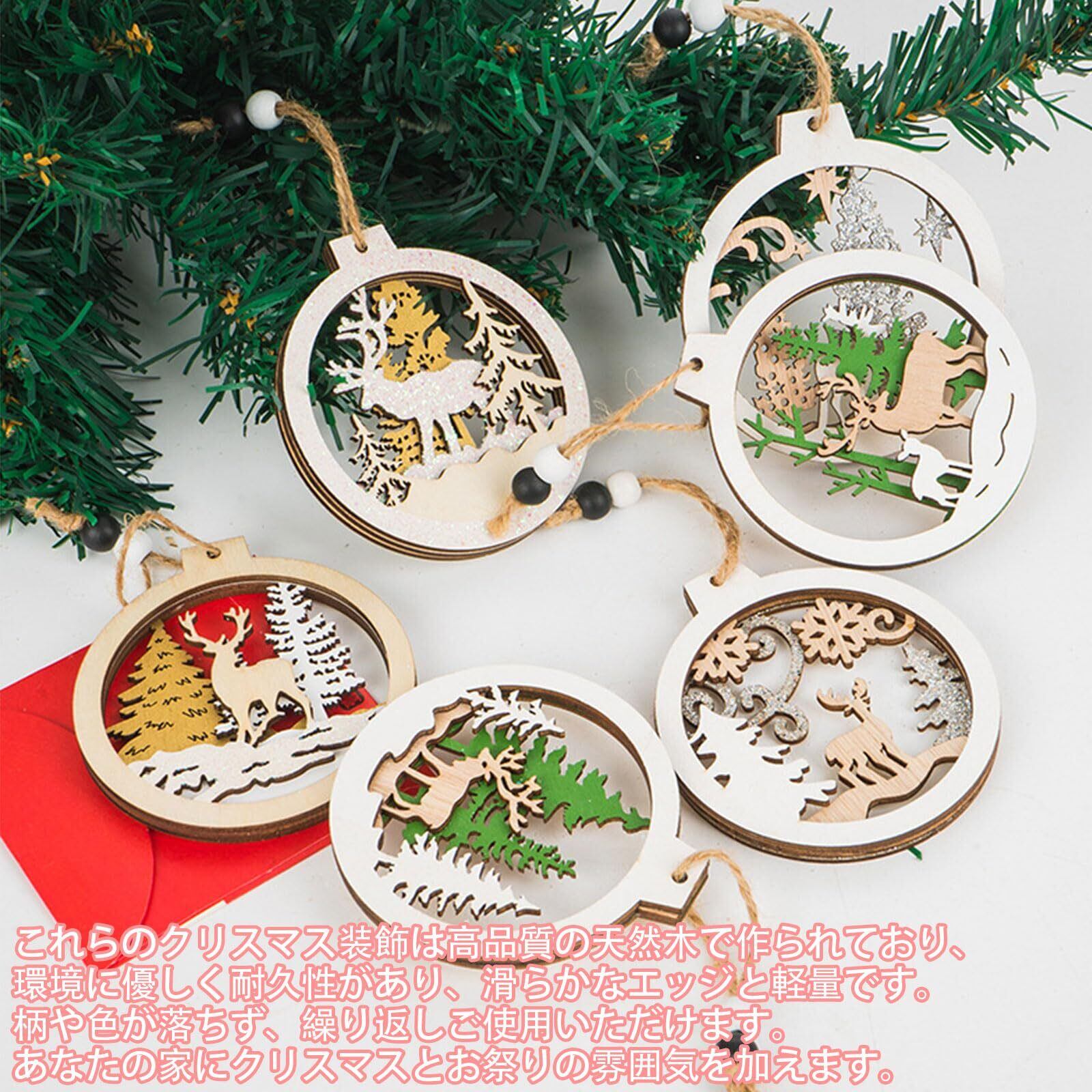 クリスマス オーナメント 6個セット 木製 北欧 クリスマス オーナメント飾り 紐付き 3D クリスマスツリー 飾り 装飾 クリスマスツリー飾り デコレーション 贈り物 (セットE)