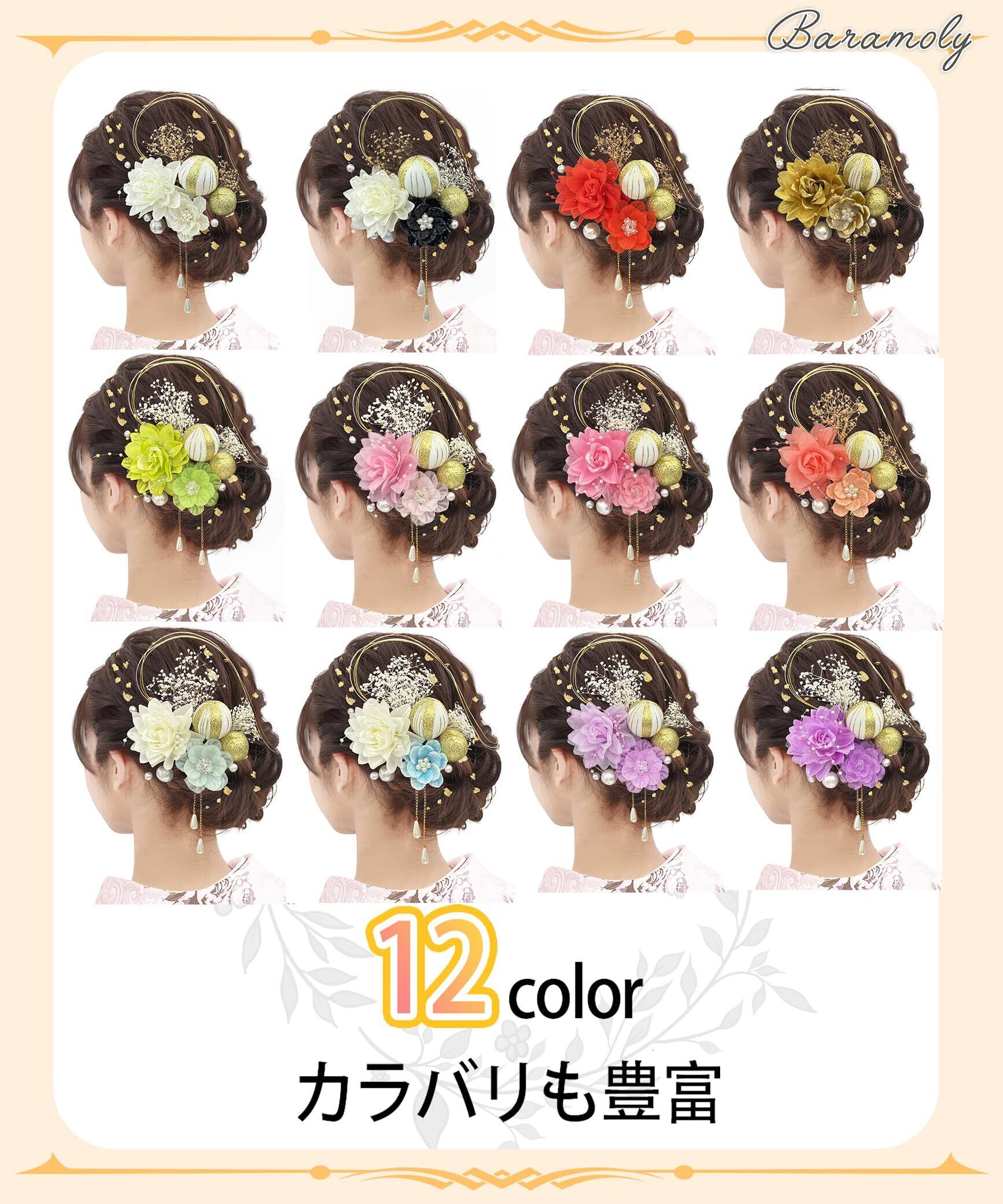 【Baramoly】成人式 髪飾り 浴衣 髪飾り 卒業式 振袖 水引 金箔 七五三 髪飾り ゴールド 和玉 かすみ草 袴 パール 着物 入学式 ボリューム感 かわいい ドライフラワー 髪飾りセット 浴衣 レディース 前撮り 写真通り 和装小物