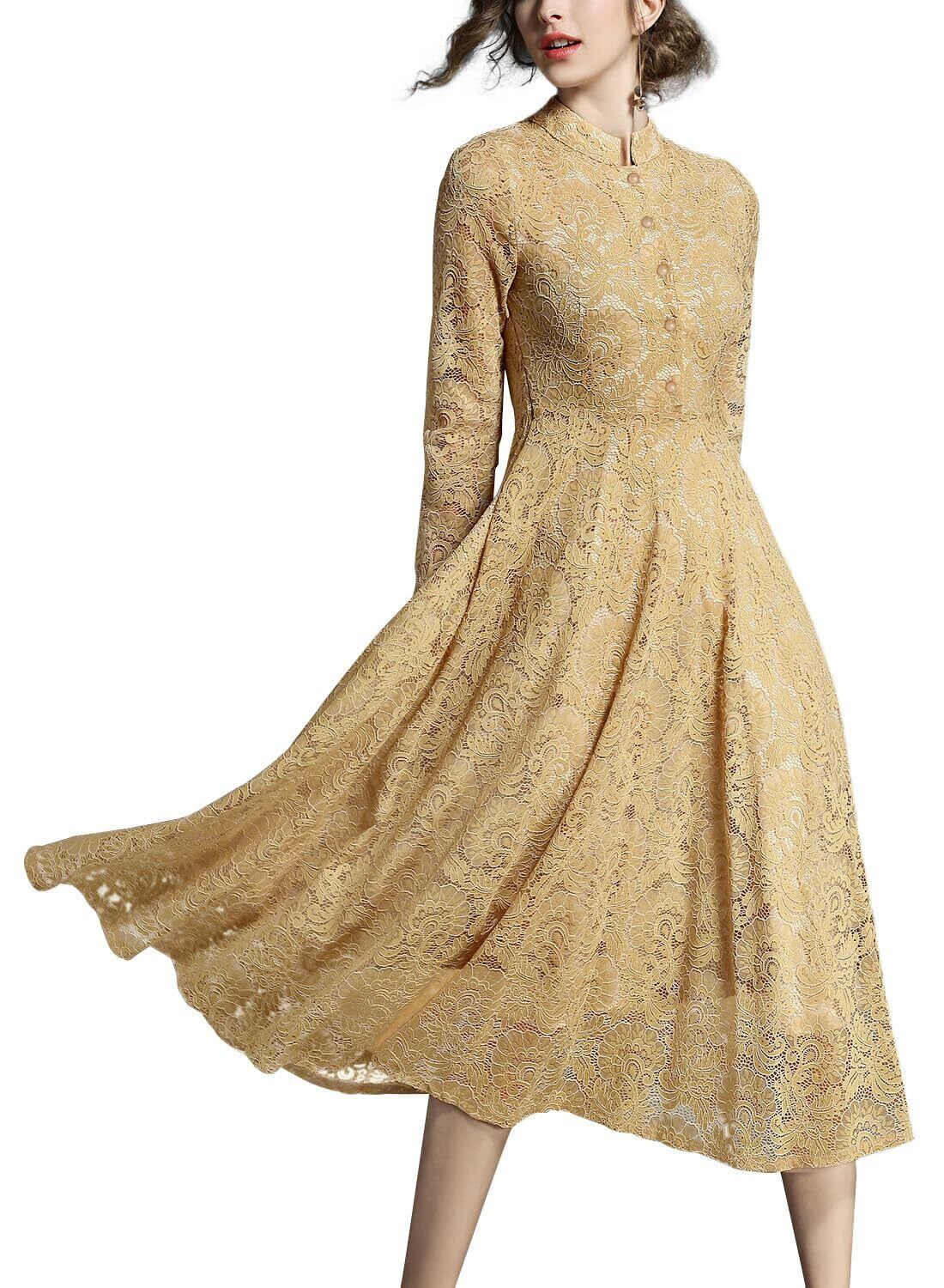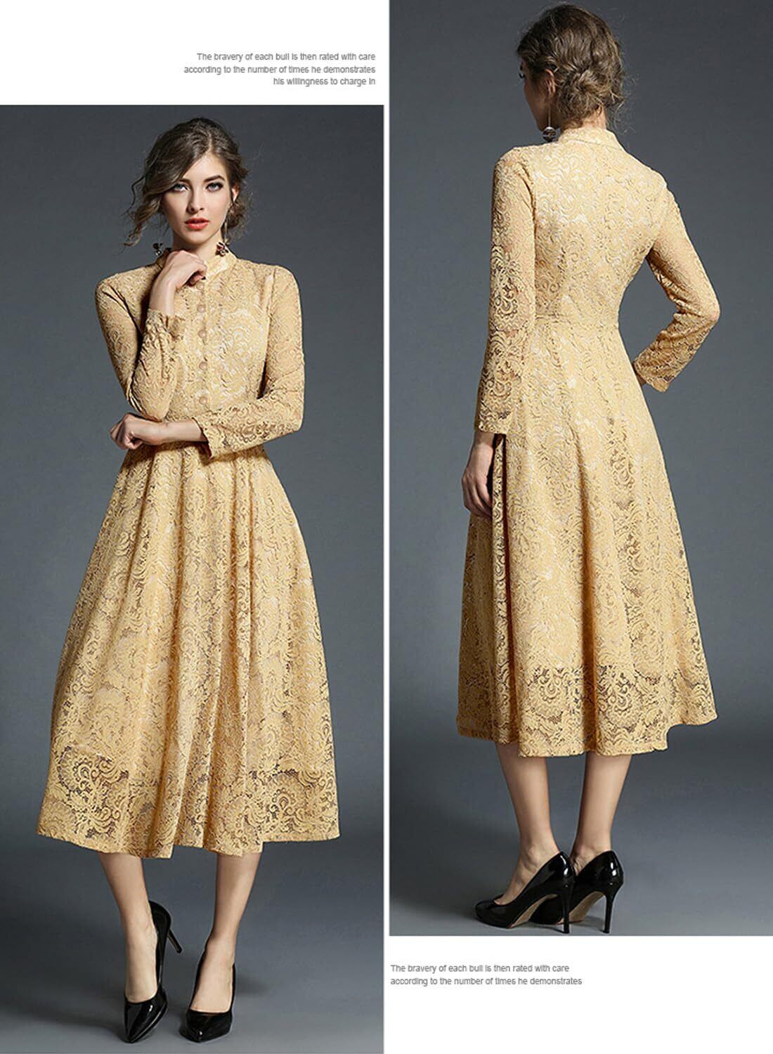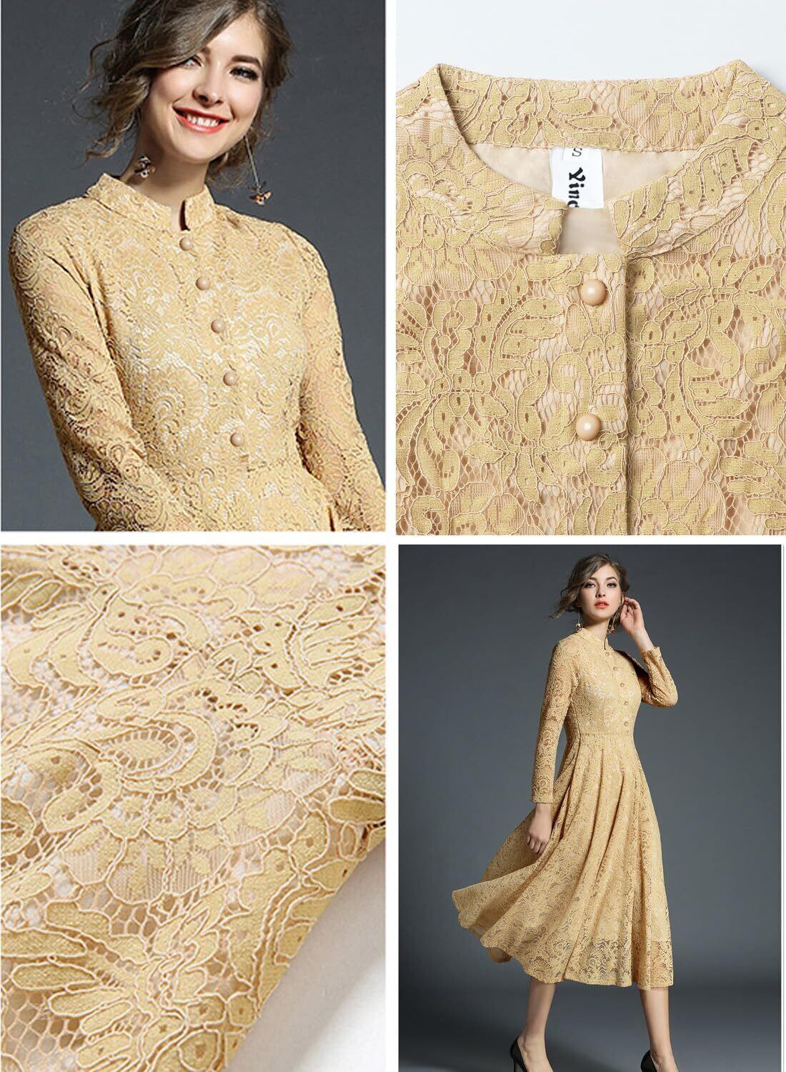 [Yino] 五色展開 ワンピース ドレス 結婚式 パーティードレス 総レース マキシワンピース 秋冬 春 レースワンピース ロングドレス 長袖 Aライン 20代 30代 40代 50代