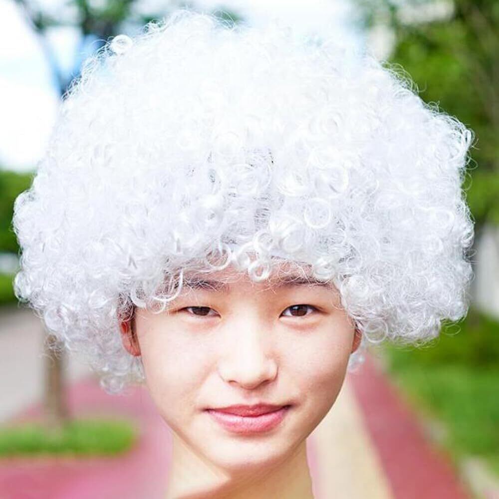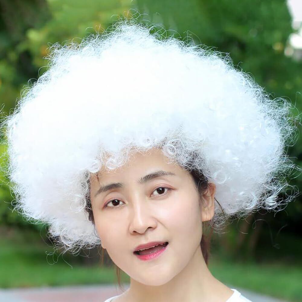 ボンバー アフロ ウィッグ 男女兼用 コスプレ コスチューム用小物 パーティー ハロウィン仮装 ピエロかつら (白)