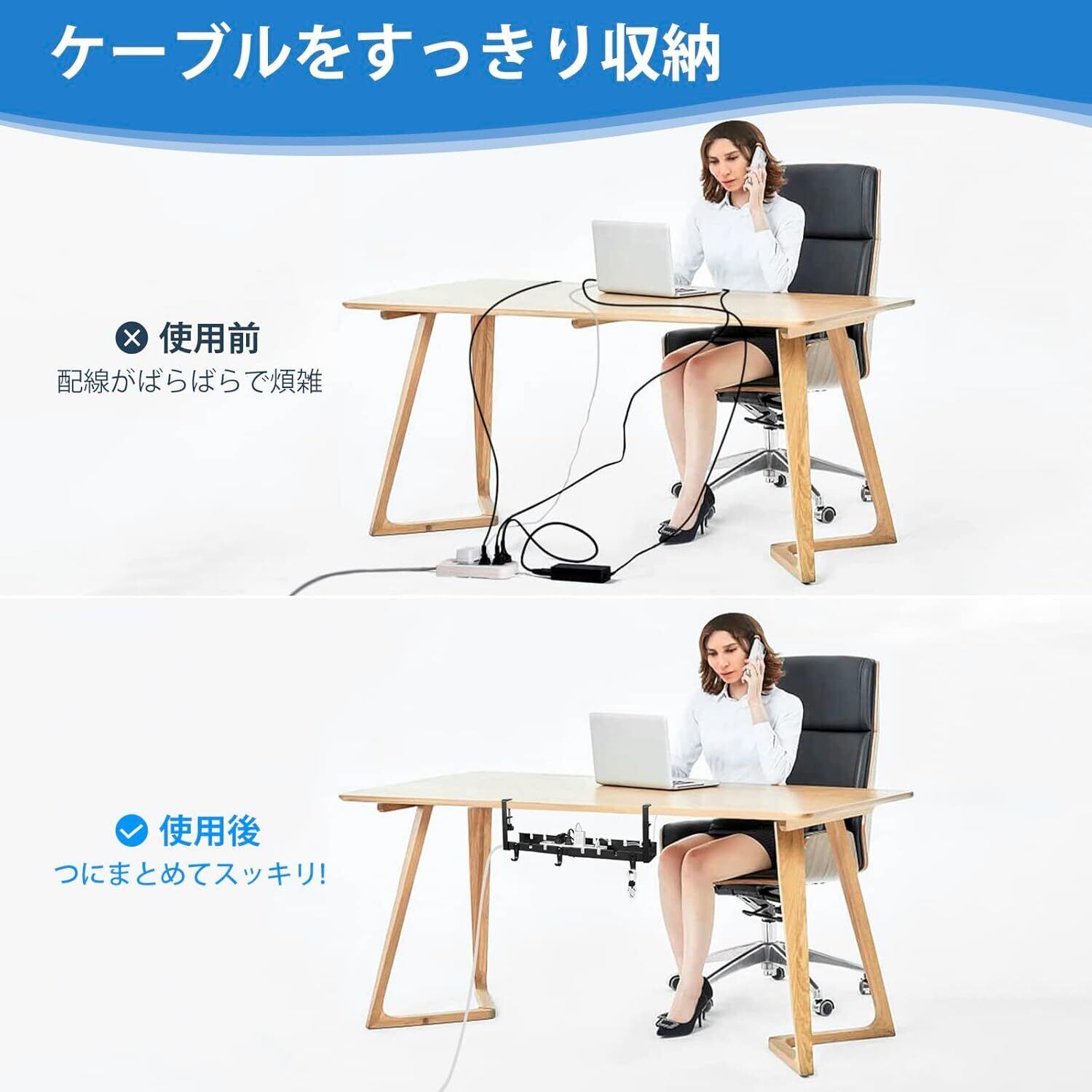 【省スペースデザイン】ケーブルトレーを効果的に整理し、プラグやルーターなどの機器をデスクの下に収納することで、デスクをより効率的にご利用いただけます。たとえば、キャビネットの下の調味料収納ラックとして使用したり、テーブルの前に置いてイヤホン充電ケーブルなどの小物を収納したりできます。事務所の掃除、ケーブル収納と配線 整理が簡単になります。