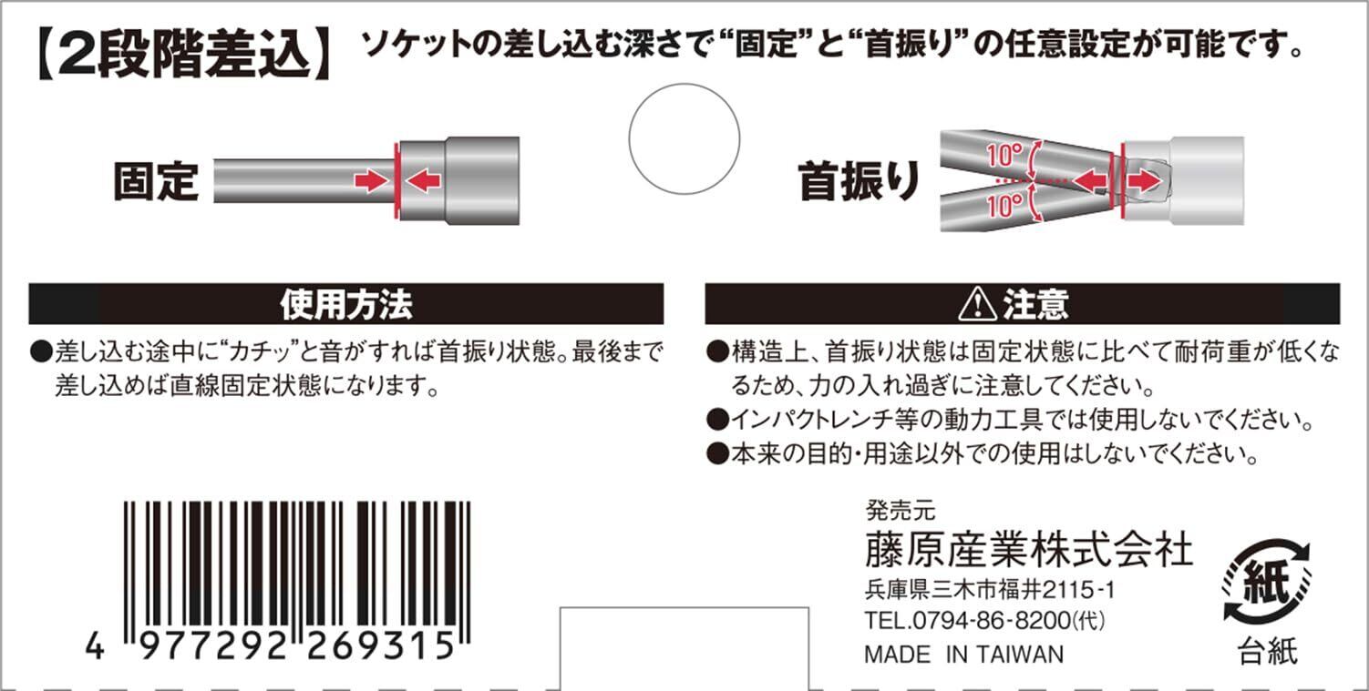・ソケットの差し込む深さで、固定と首振りの任意設定が可能