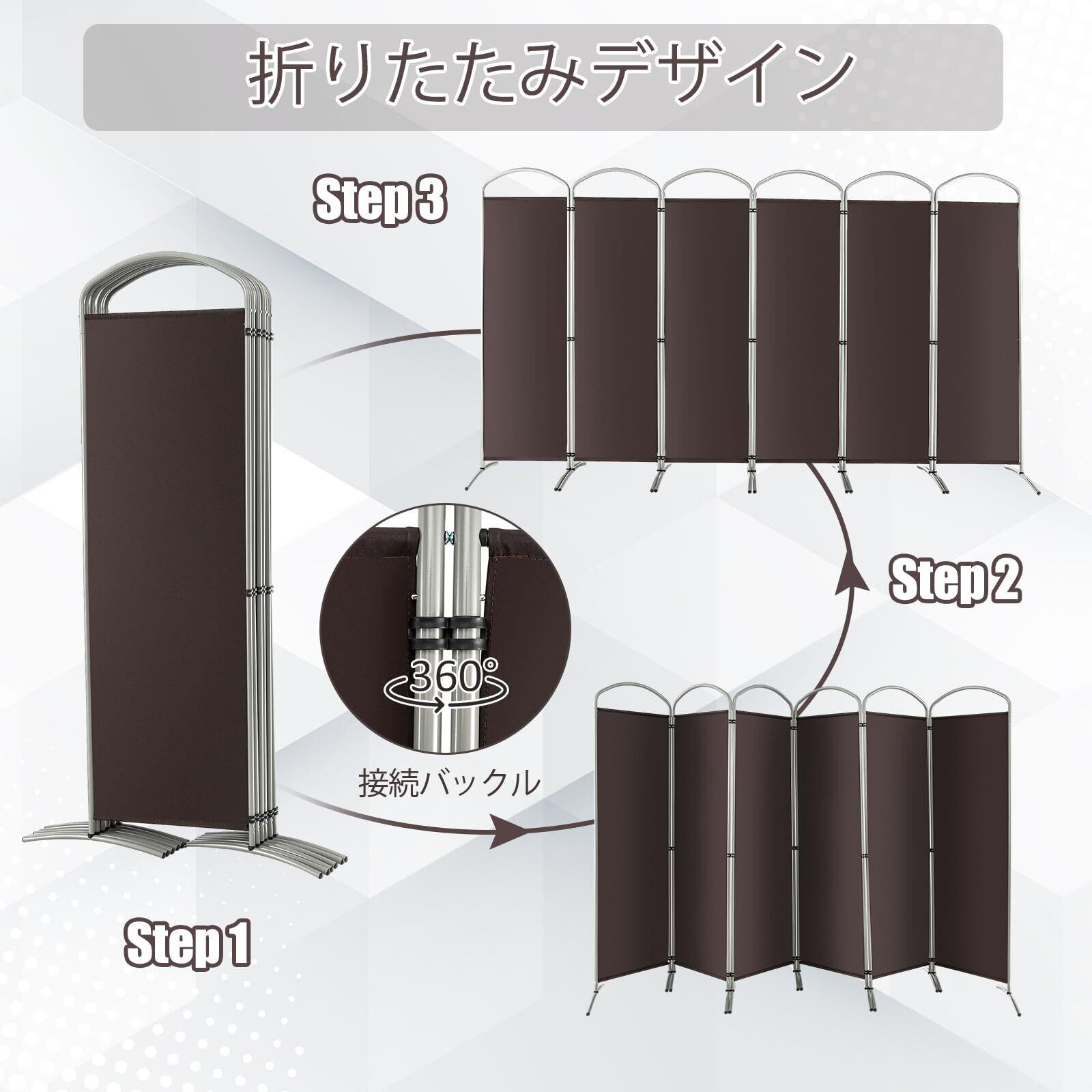 Giantex パーテーション 間仕切り 6連 幅331cmx高さ188cm 折りたたみ式 衝立て おしゃれ 仕切り壁 部屋 ついたて 屏風 スクリーン 目隠し 室内 部屋を仕切る 軽量 移動便利 自立式 オフィス 事務所 クリニック 会議室 (ブラウン 六連 カーブトップ)