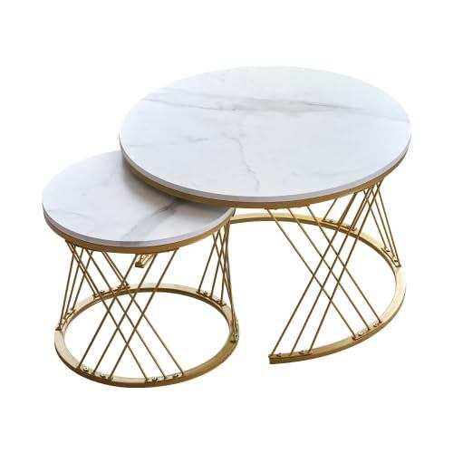オーエスジェイ(OSJ) センターテーブル ネストテーブル ローテーブル 入れ子式 天板 大理石調 2個セットサイドテーブルローテーブル 丸 円型テーブル ローテーブル北欧風 一人暮ら