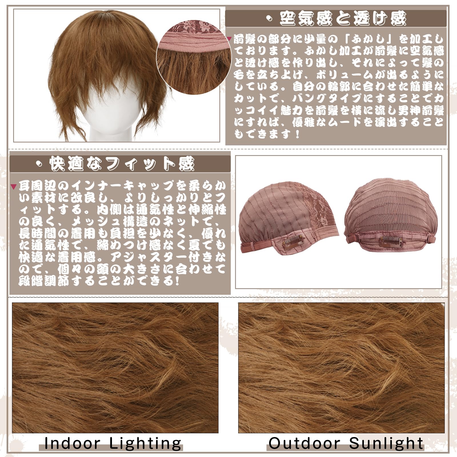 ❀素材構成:高品質耐熱ファイバーを使用、ちょっとした光の反射も自然に見え、ウィッグ特有のテカリがなく、人毛に近いしっとりとした自然な手触り。まるで自分の髪のような自然てす!耐熱なので、コテ、ドライヤー、アイロンなど最大160℃まで使用可能ですので、好みのカールと長さに整えることができます。内側は通気性と伸縮性の良く、バラメッシュ構造のネット。優れた通気性で、締めつけ感なく夏でも快適な着用感。医療用としても皆様から愛されています。