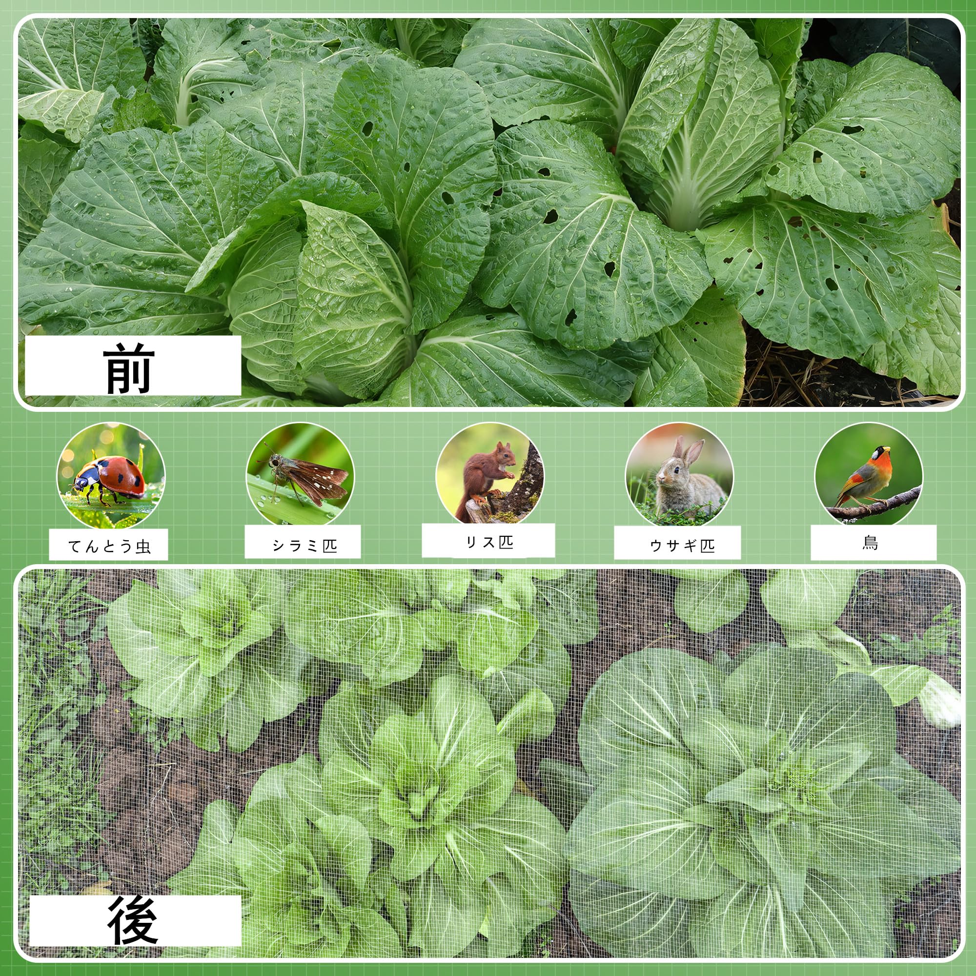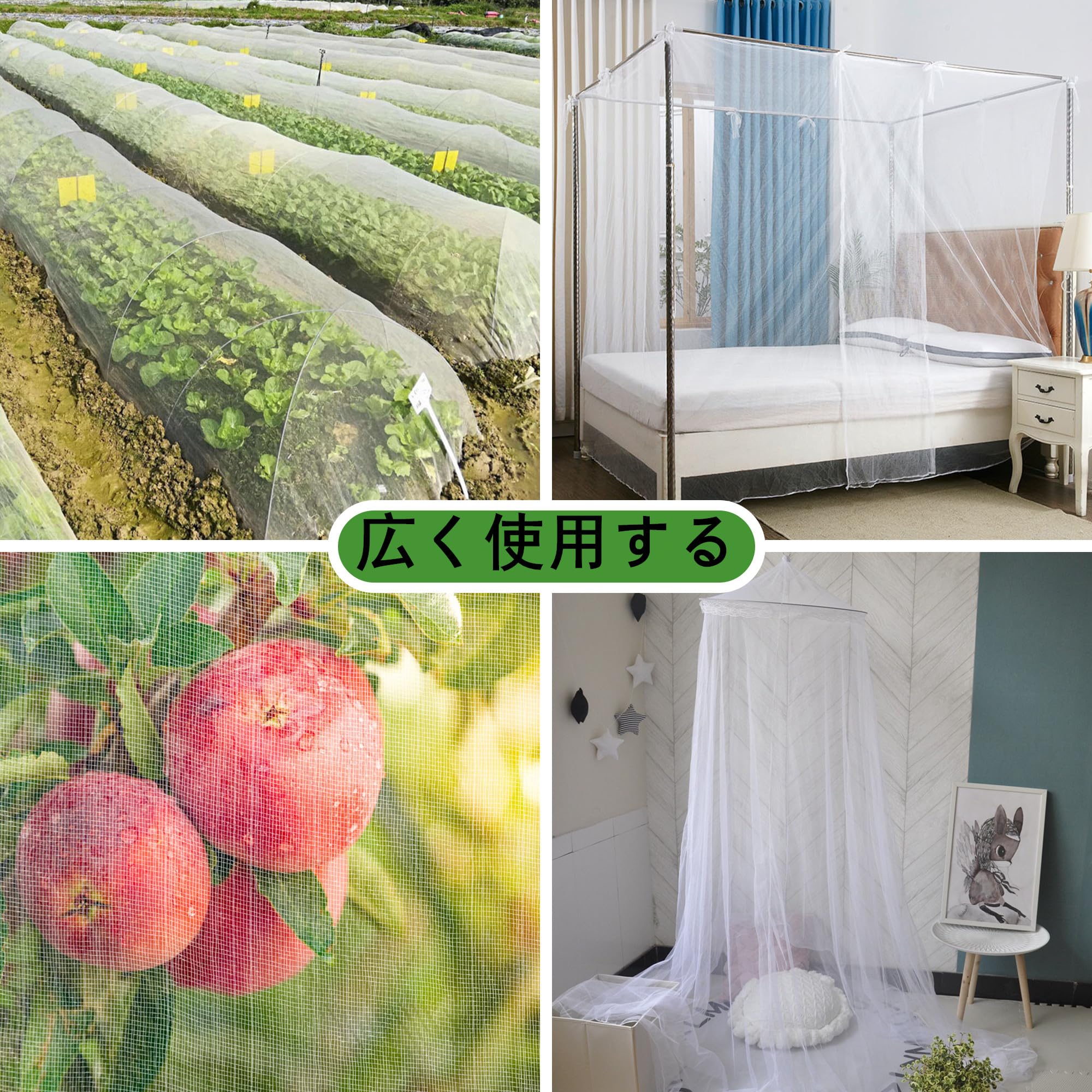 【超微細篩網】超微細花園網は0.8 mmx 1 mmの超微細篩網を有し、野菜、果物、花卉作物を害虫から有効に保護する。