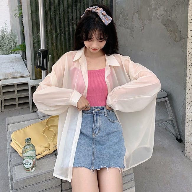 [Xingsas] シアーシャツ 透け感 レディース日焼け止め 上着 長袖 前開き 重ね着 大きいサイズ トレンド 白 カジュアルファッション ゆったり涼しい 夏 春 秋 ライトブルー