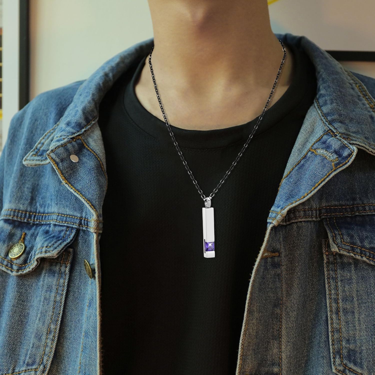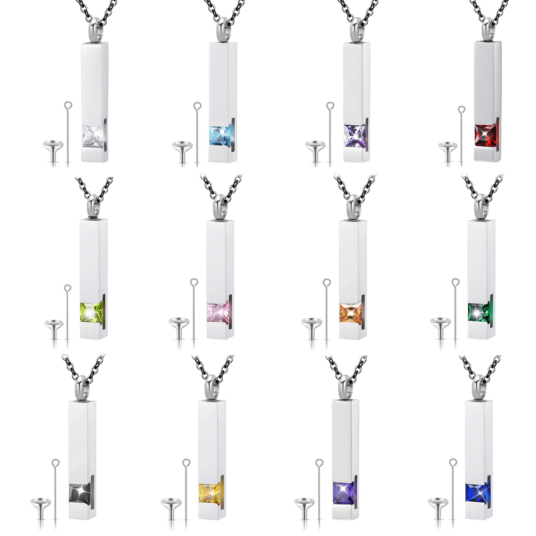 [Flongo] 誕生石ネックレス ジルコン ネックレス直方体 遺骨スティック 刻印無料 漏斗付き スティック メモリアル アクセサリー ペアネックレス カップル お揃い ステンレス 手元供養 男女兼用 記念日 誕生日 プレゼント シンプル 12色(シルバー)