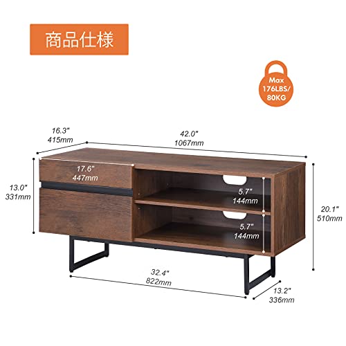 【商品仕様】商品サイズ:幅106.7×奥行41.5×高さ51cm/耐荷重:天板50kg 、棚板10kg、底板10kg/材質:パーティクルボード(メラミン樹脂加工)、スチール/対応テレビサイズ:46型まで/注意※出荷形態:組立品(プラスドライバー同梱しておりません。お客様が自分でご用意ください。)