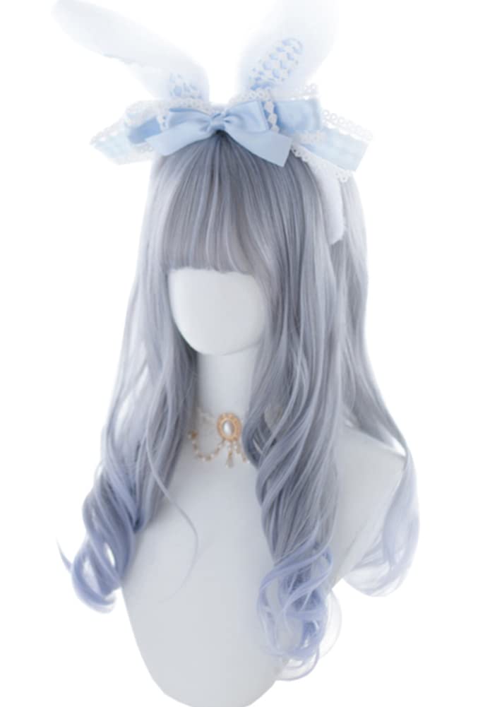 原宿風 GAL系 耐熱ウィッグ かつら カール ロング 巻き髪 グラデーション ウィッグ ロリータウィッグ パーティー ロリータlolita風 日常 コスプレ 小顔効果 (グレー 水色)