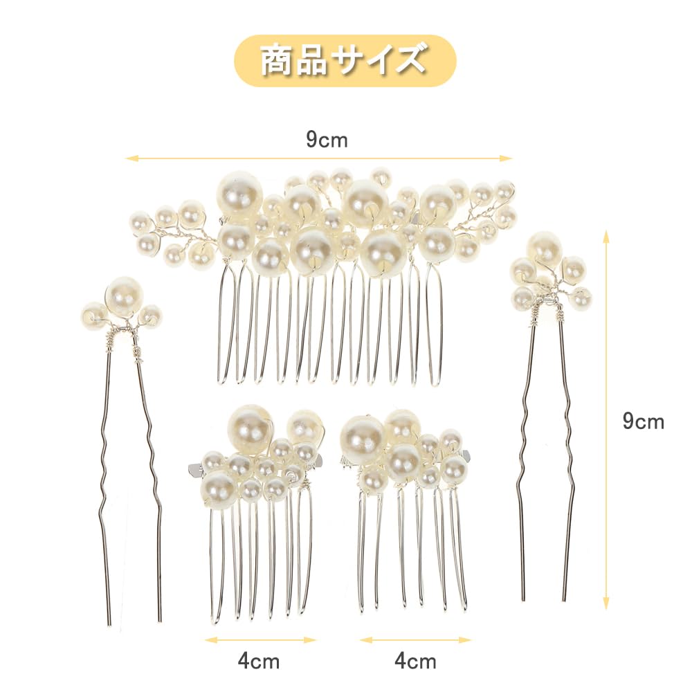 【商品内容】5個セット、大きいパールヘアアクセサリー*1、小さいパールヘアアクセサリー*2、パールヘアピン*2。