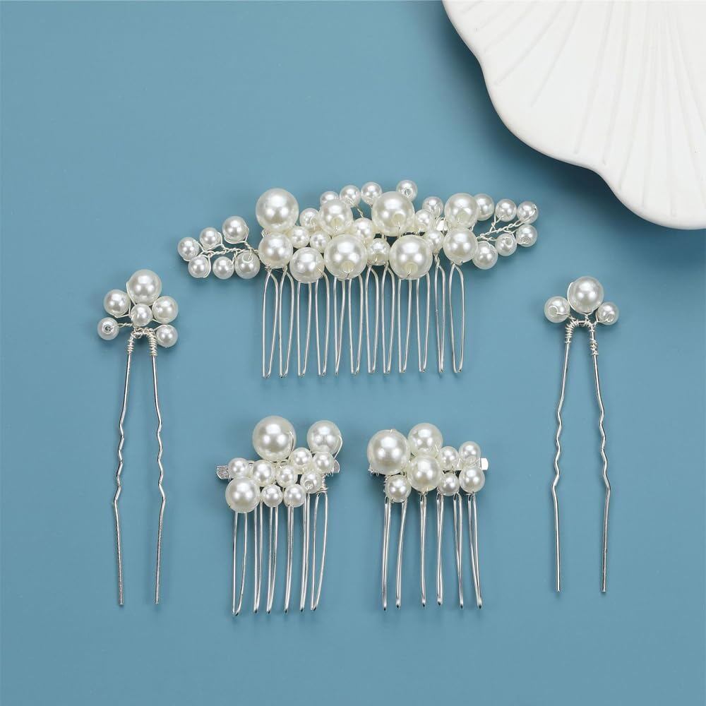 DFsucces パール 髪飾り ヘッドドレス Uピン ヘアピン かんざし 和装 撮影 結婚式 ウェディング パーティー 花嫁などの髪飾り用 5個セット (シルバー)